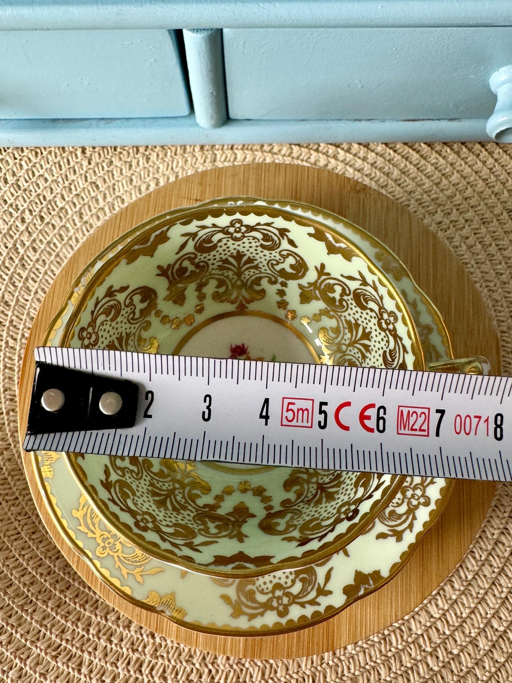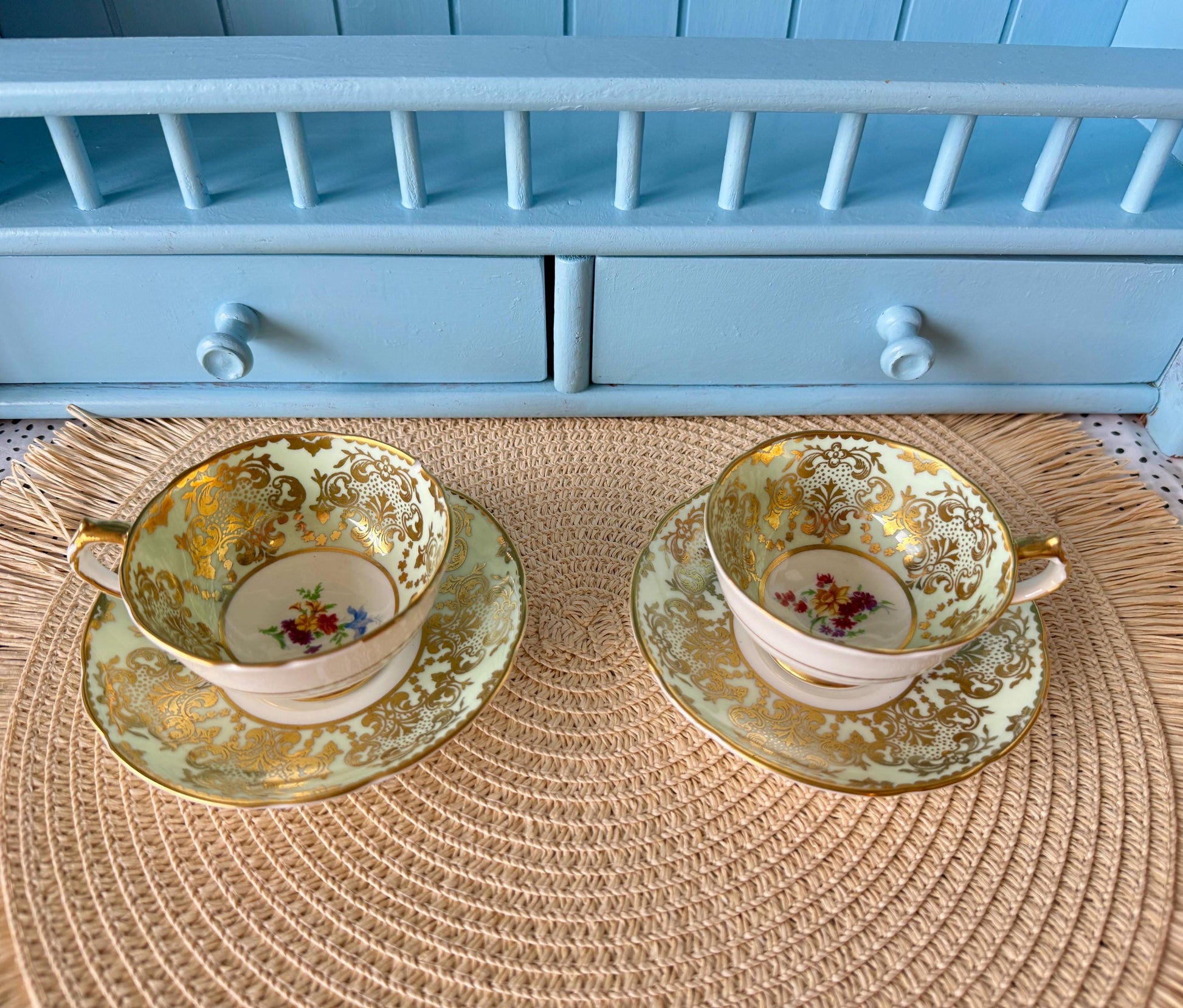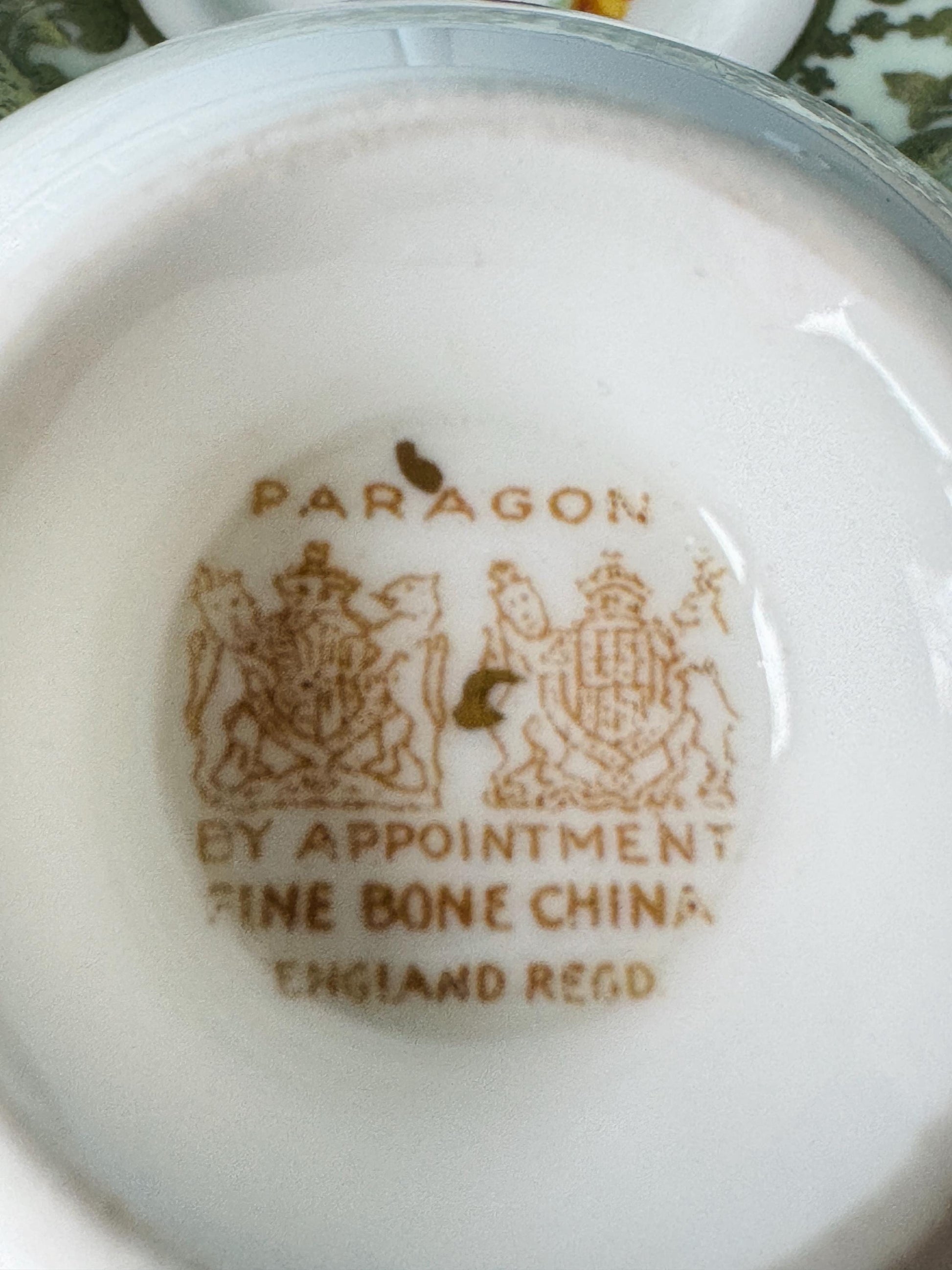 2 Rare Vintage 1940s Paragon Pastel Green Espresso Cup Saucer, Bone China, Floral Design, by Appointment HM Queen Elizabeth, Double Warrant!