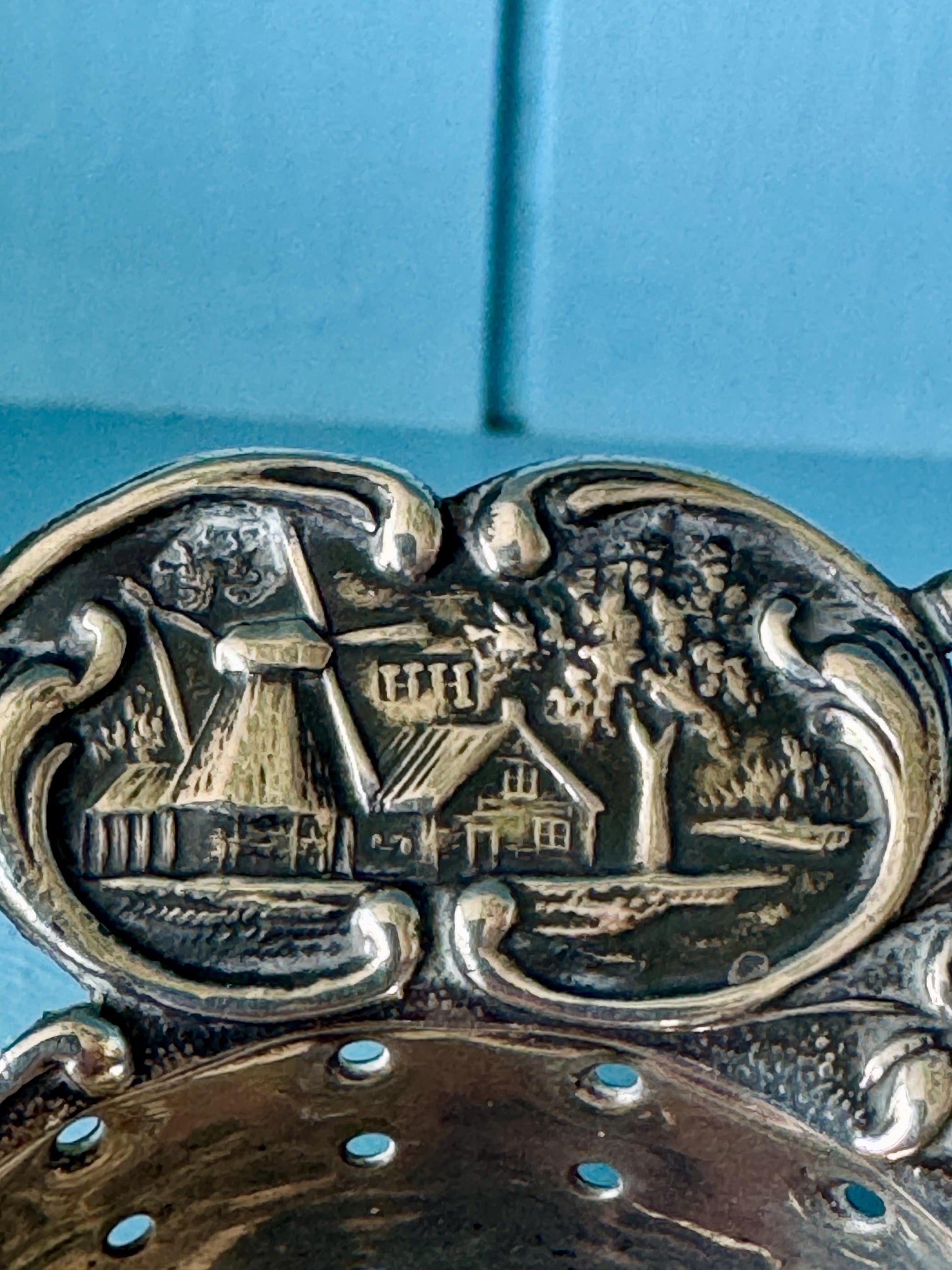 🇱🇺 Step into Dutch history with this exquisite antique silver tea strainer and stand, crafted in Schoonhoven in 1921 by the renowned silversmith Herman Hooijkaas (HH). A true collector’s piece, this set combines fine craftsmanship with iconic Dutch imagery. ✨ Design Details * Handle features a fine...