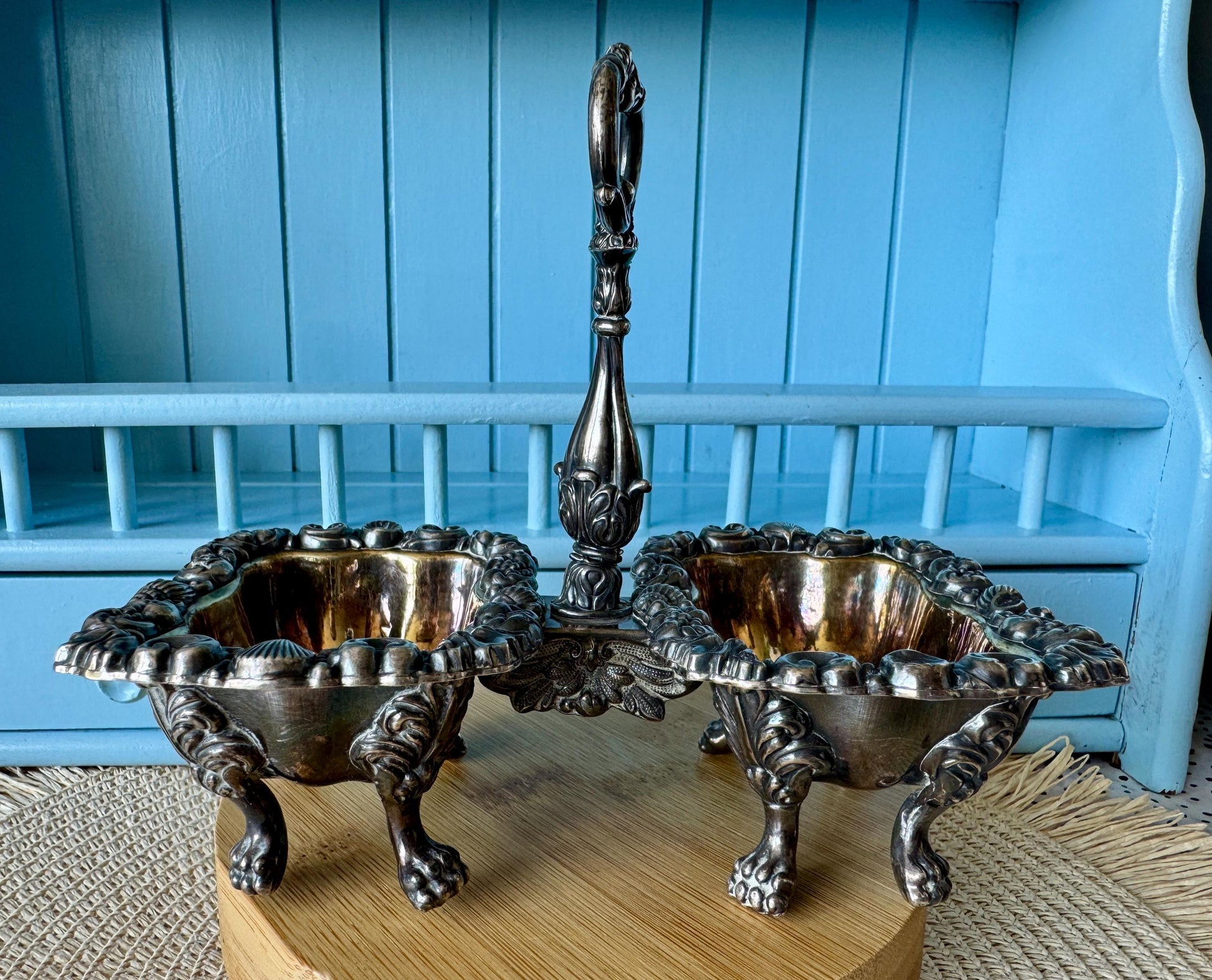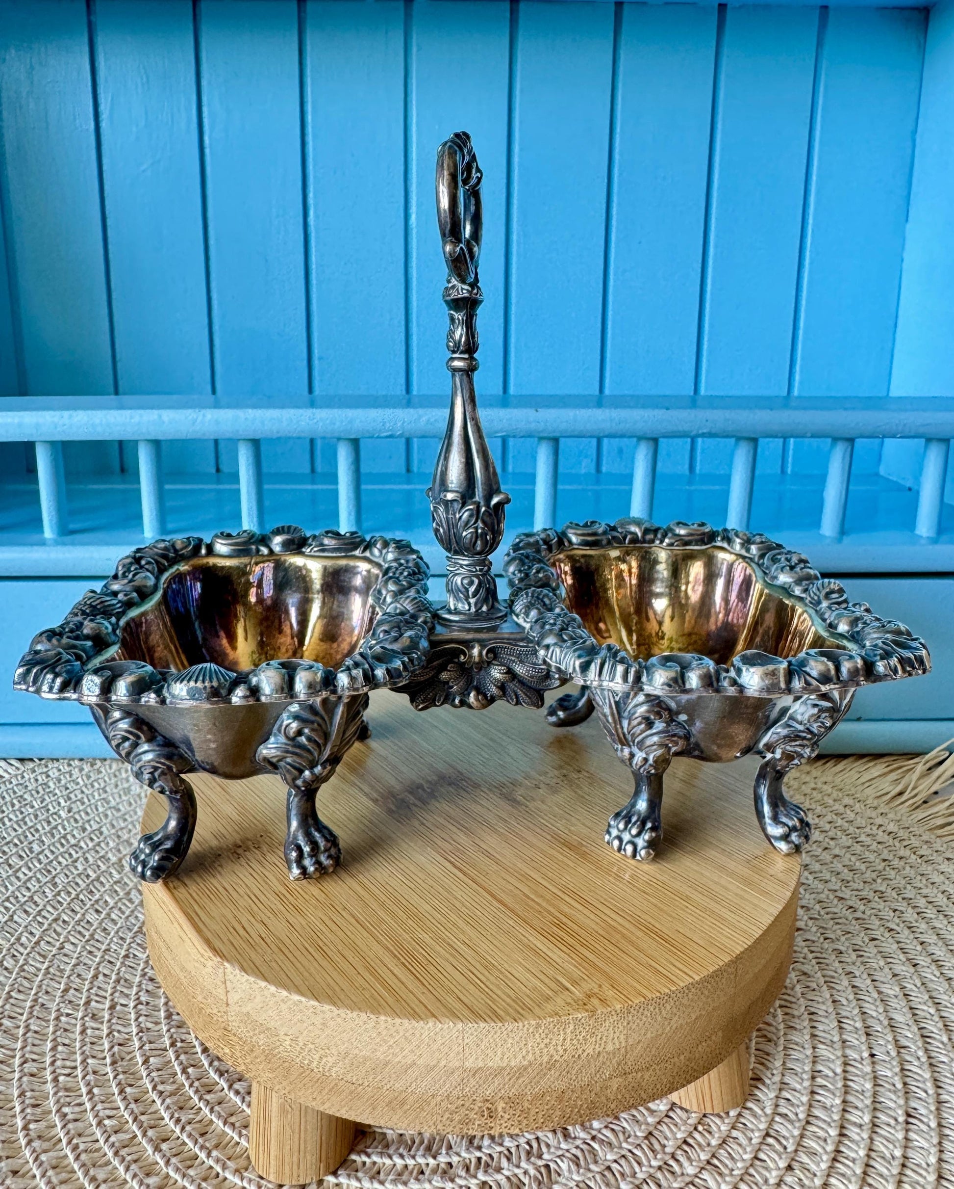 Antique French Gandais Silver Plated Double Dish Caddy