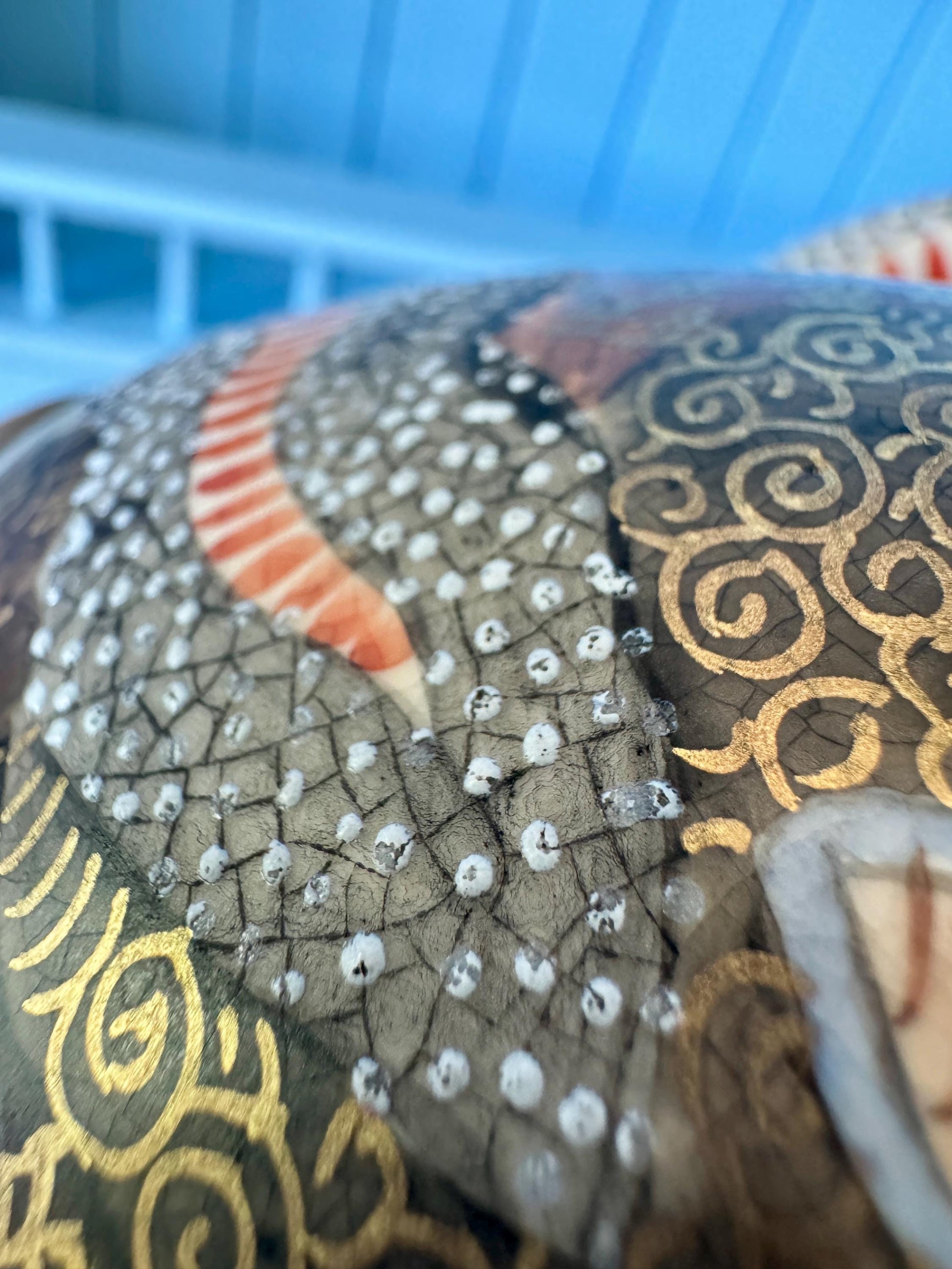 ~ Hand-painted with meticulous attention to detail, including raised enamel work and shimmering gold accents