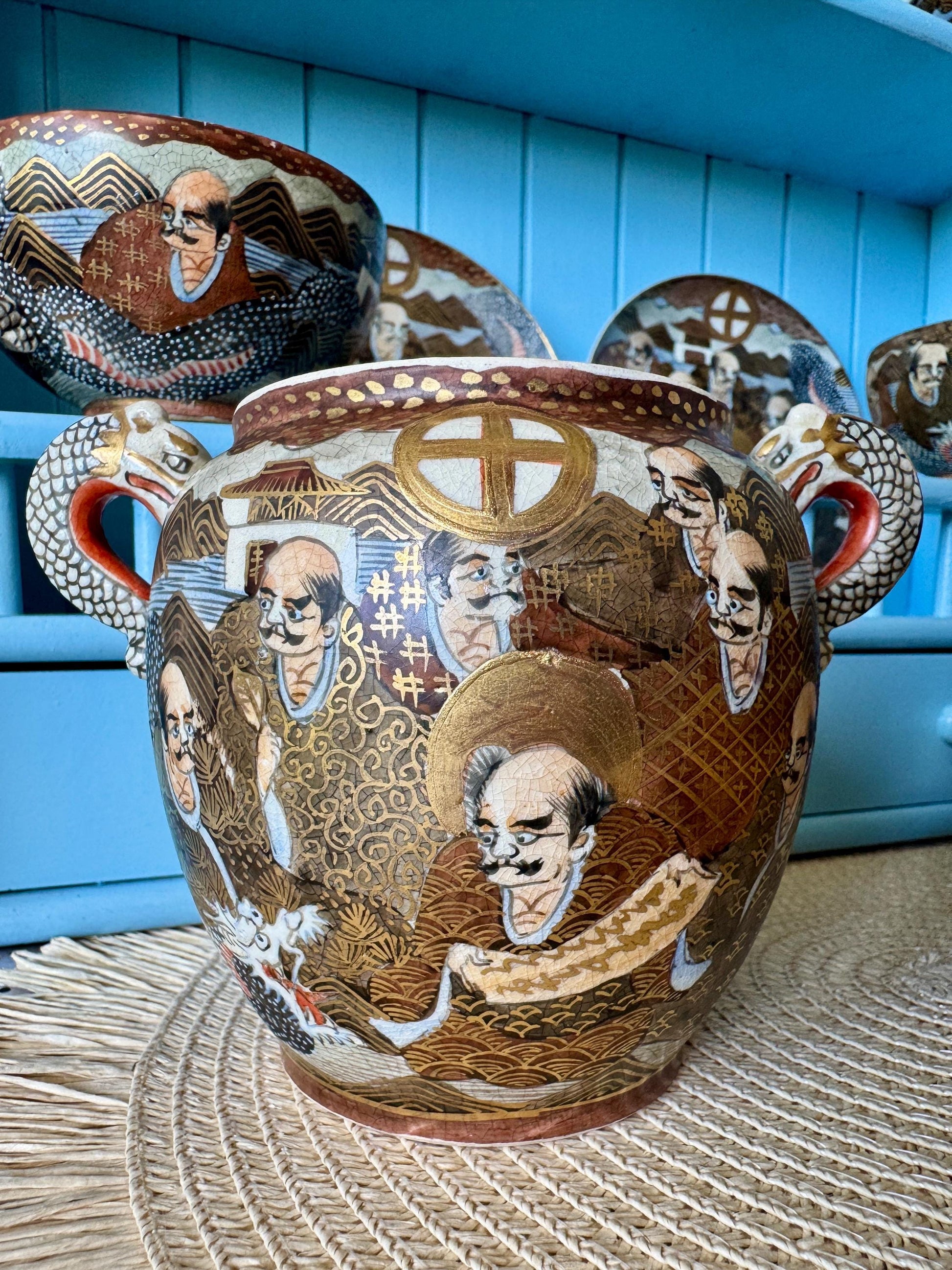 ✨ Antique Japanese Satsuma Dragon & Immortals Tea Service – Meiji Era ✨