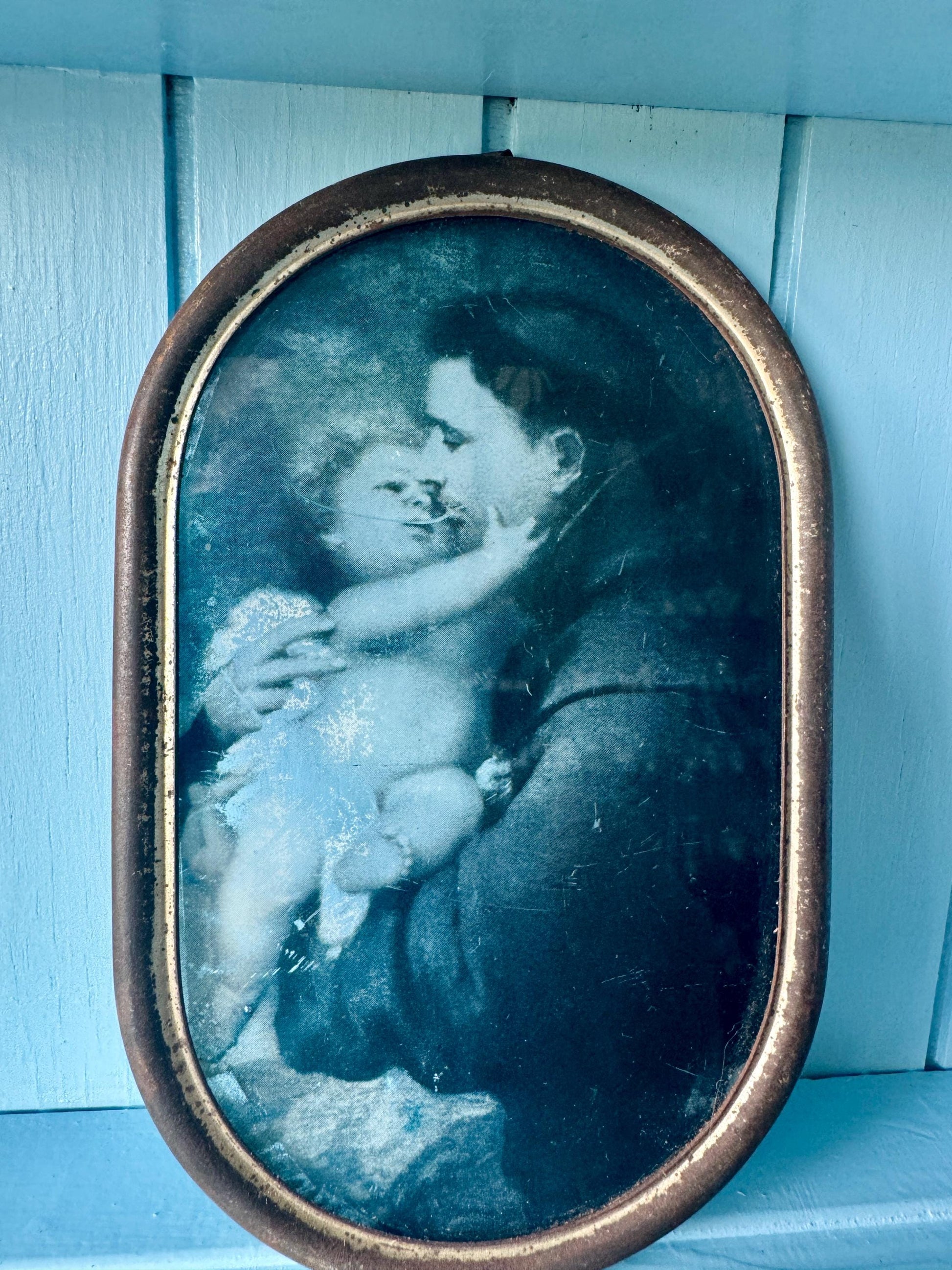 🖼️ Painted lovingly on the reverse side of glass and set in metal frames, these pieces have weathered the years with grace. There’s a touch of rust, some paint has softly faded, and the original hangers have long disappeared — but their soulful presence remains beautifully intact.