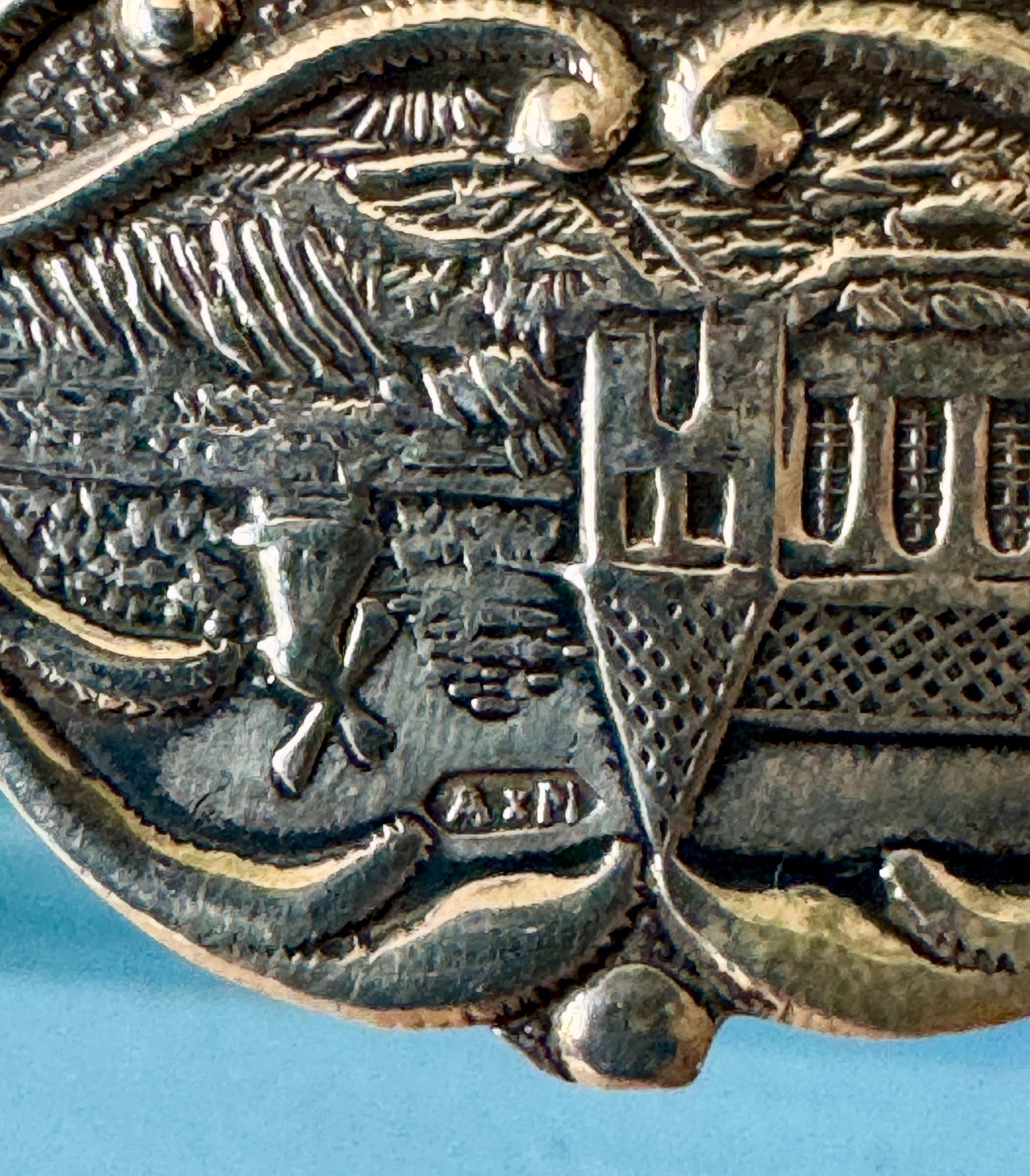 ✨ This antique Dutch silver tea strainer is a true gem for collectors and tea lovers alike. Crafted in solid silver and hallmarked with the lion passant (Dutch silver standard mark), the helmeted head of Minerva (assay office mark), and the date letter “M”, it carries all the authenticity and history of Dutch silverwork.