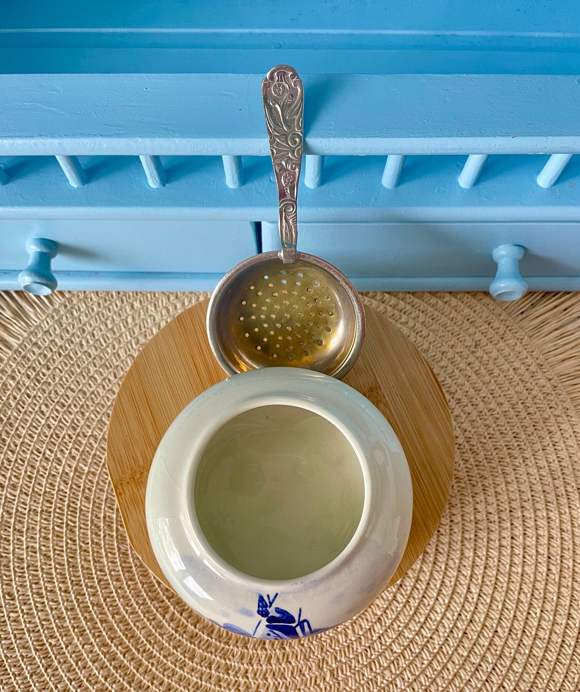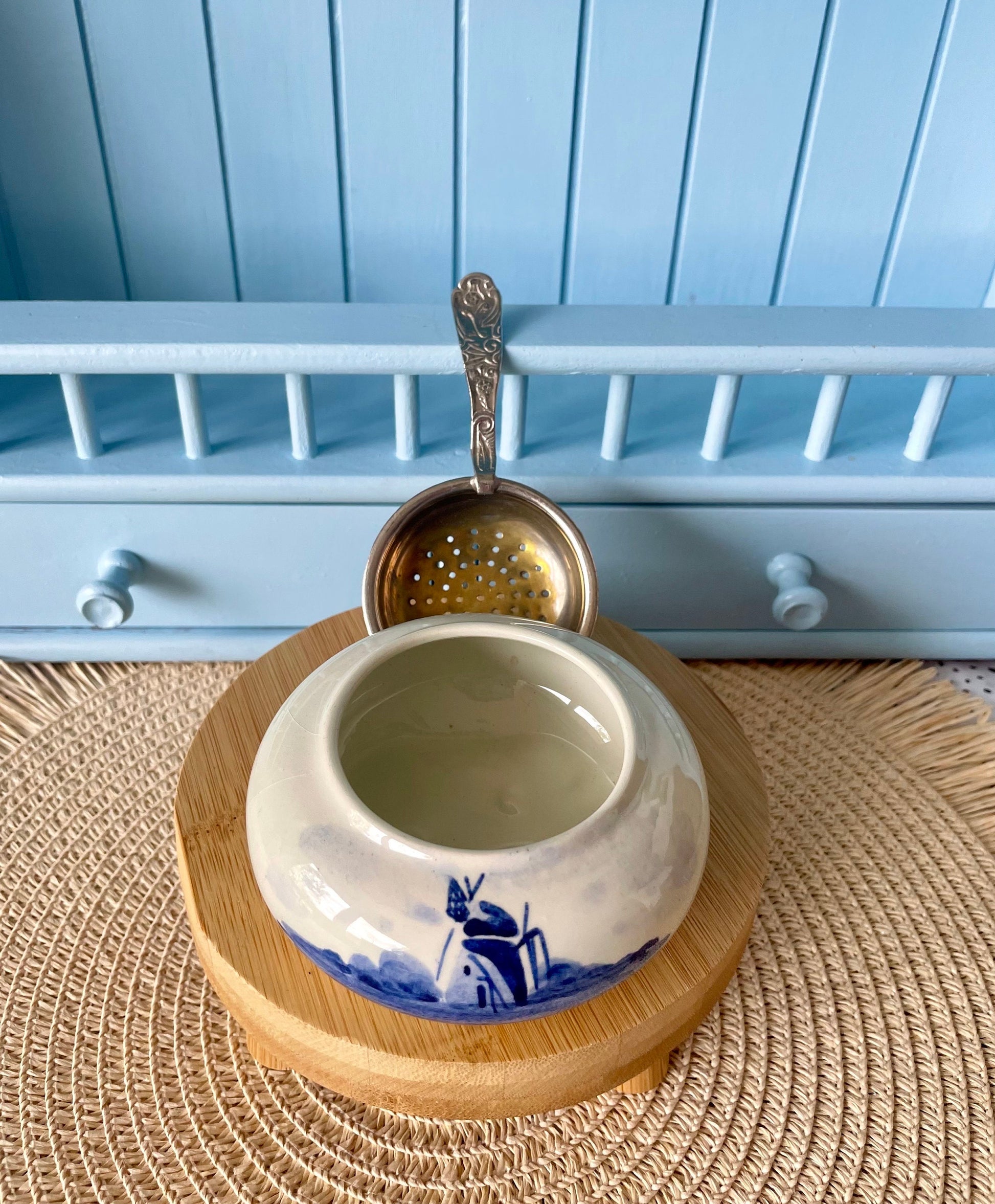 Beautiful Silver Plated Tea Strainer 'Delft Blauw', Previously Loved, Collectors Item, Vintage Gift, Porcelain Drip Bowl, Handpainted Delft