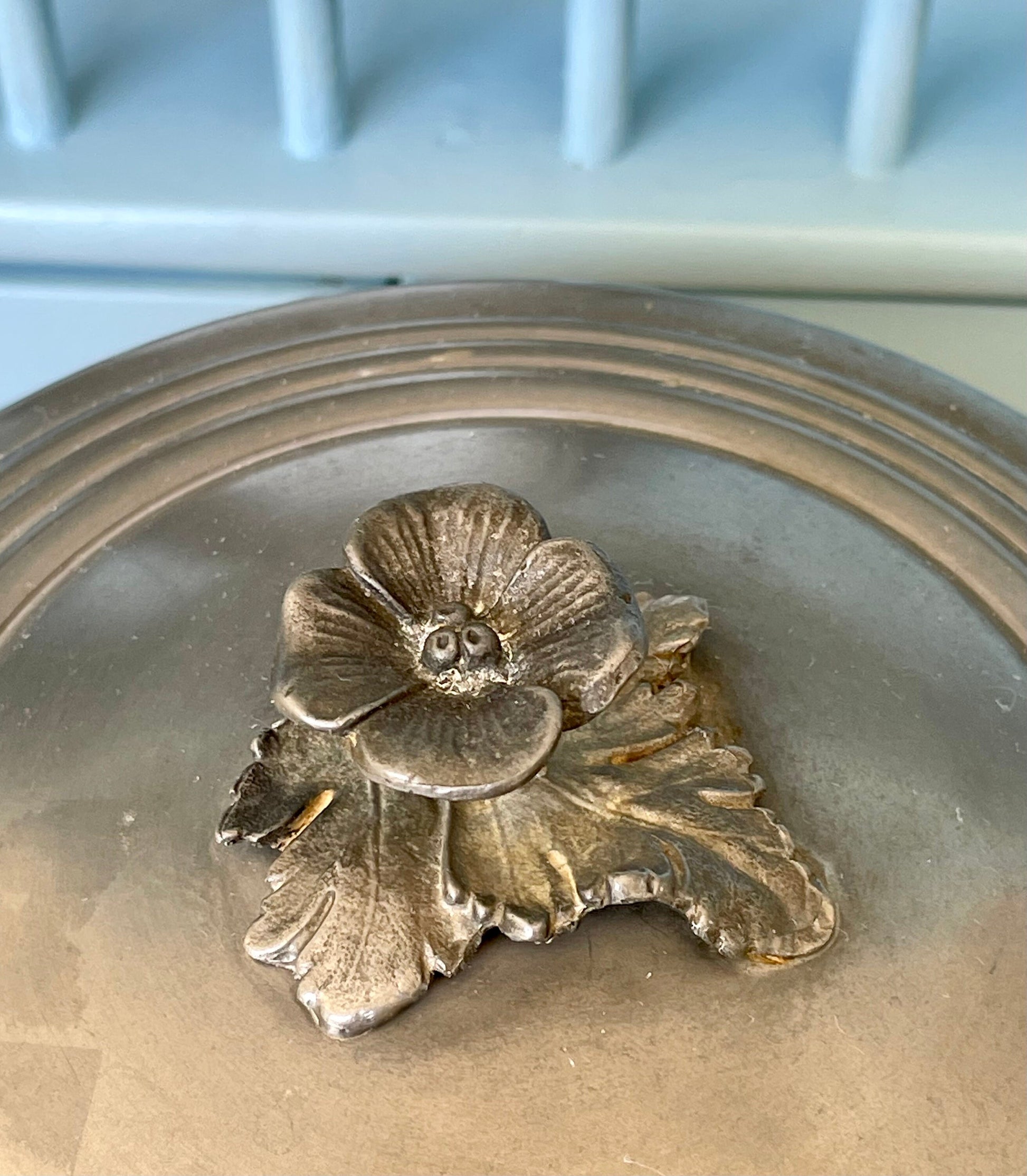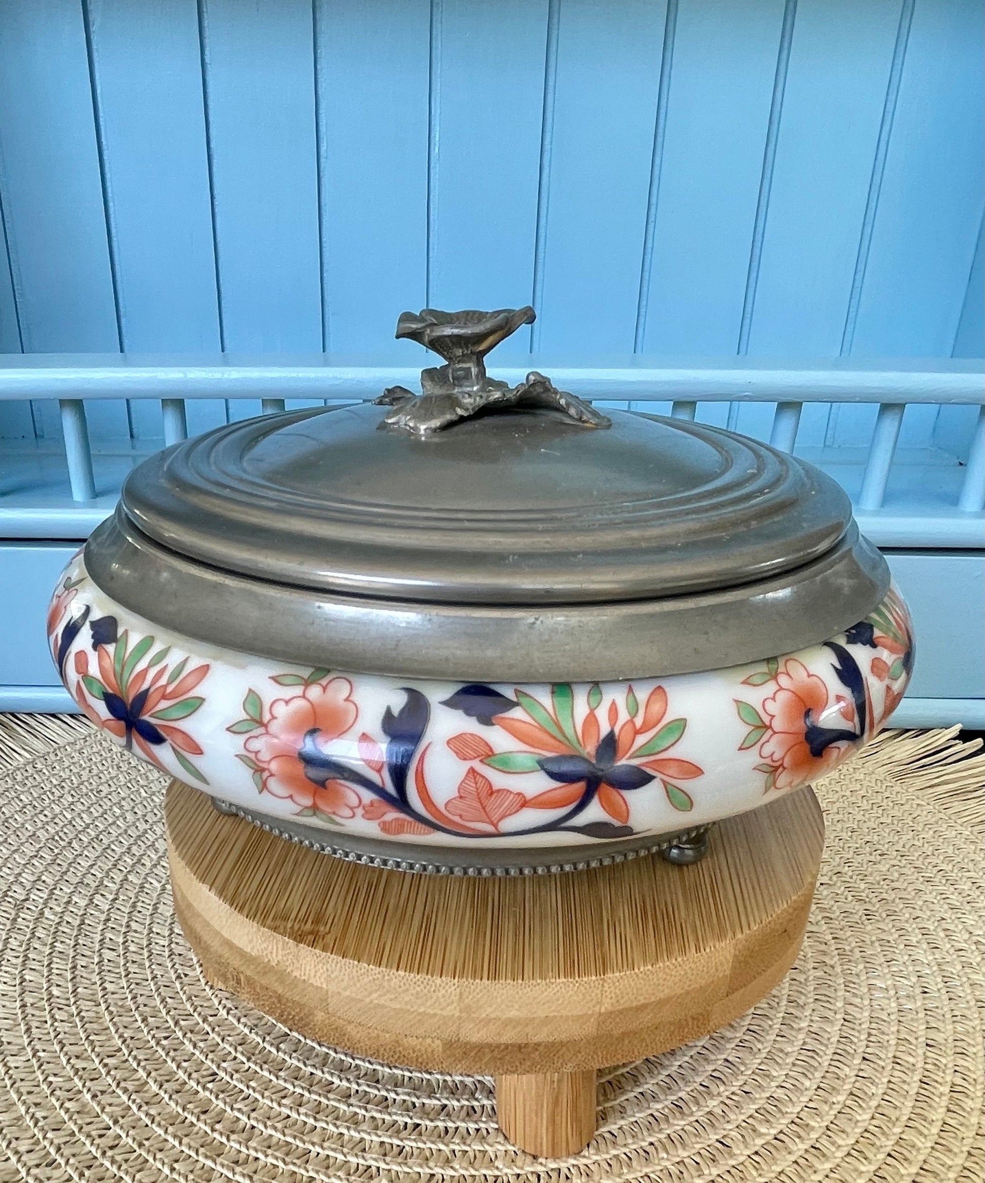 Beautiful Vintage Porcelain Bowl With Tin Lid & Rose