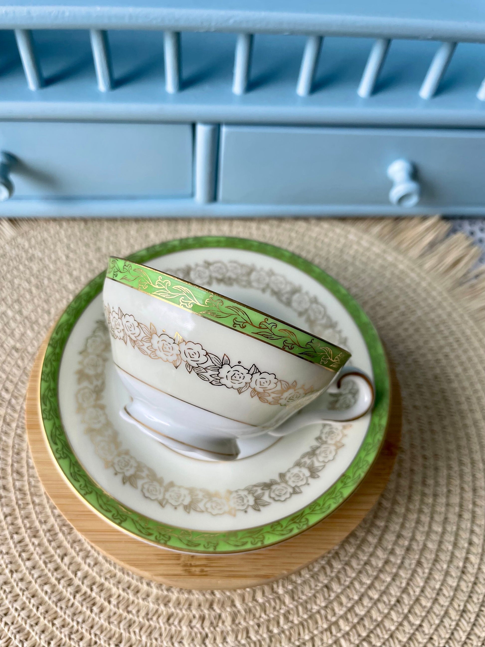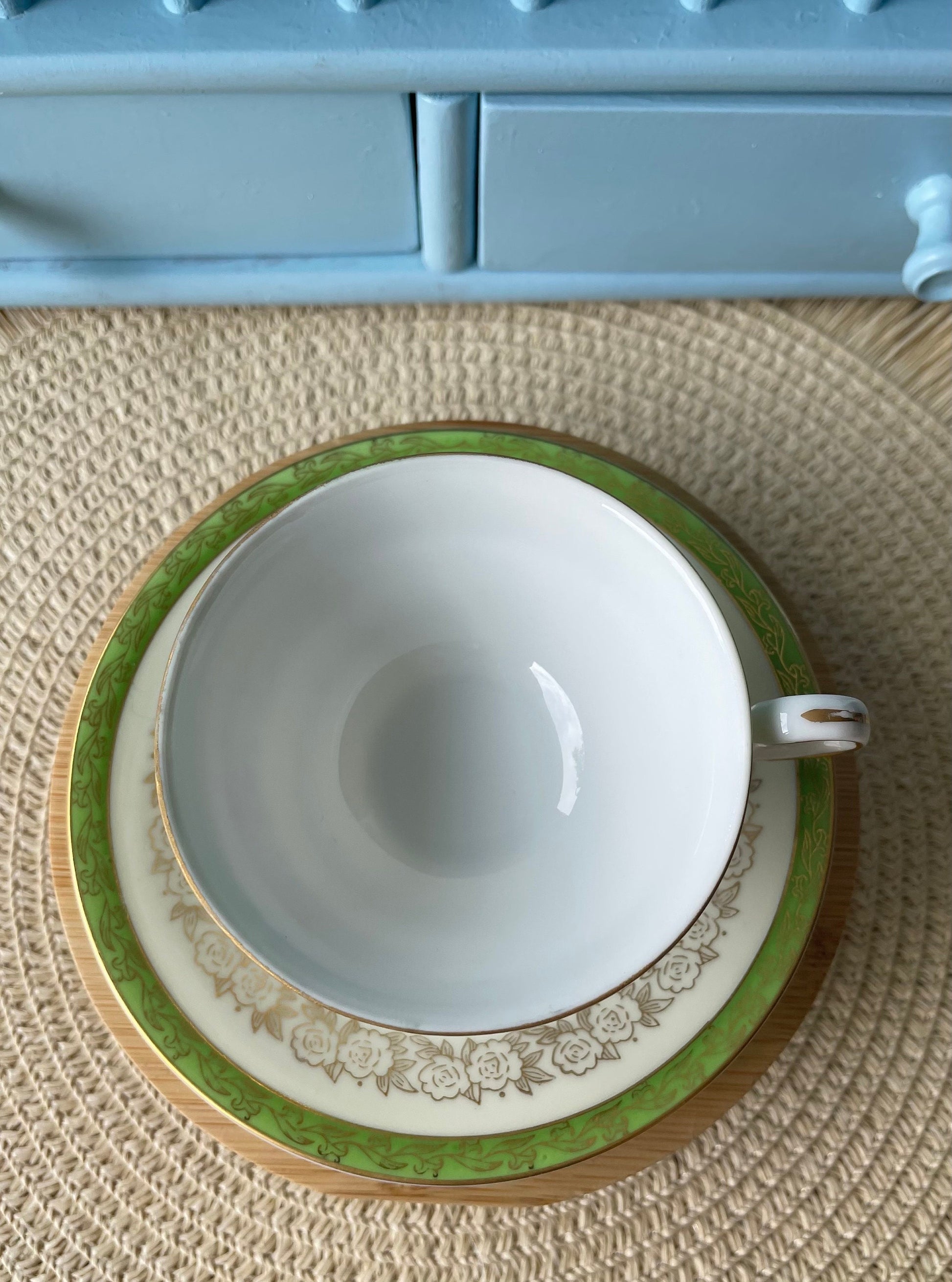 💚 Elevate Your Tea Experience with the Exquisite Hanson Fine Bone China Espresso Sized Cup and Saucer! 💚☕ Indulge in the understated elegance of this charming espresso-sized teacup and saucer from Hanson. Crafted from fine bone china, it boasts a pristine white base adorned with a delicate green ba...