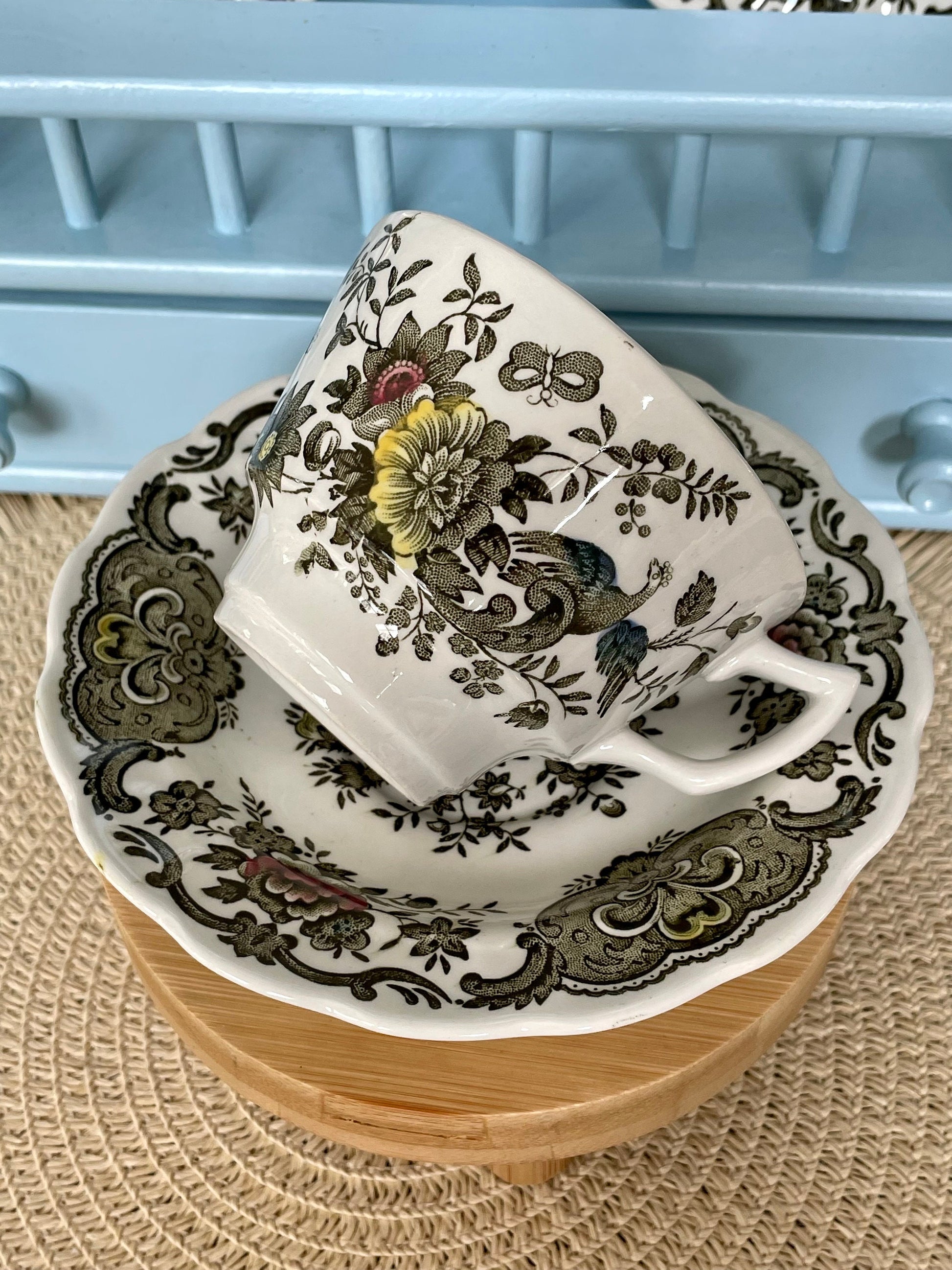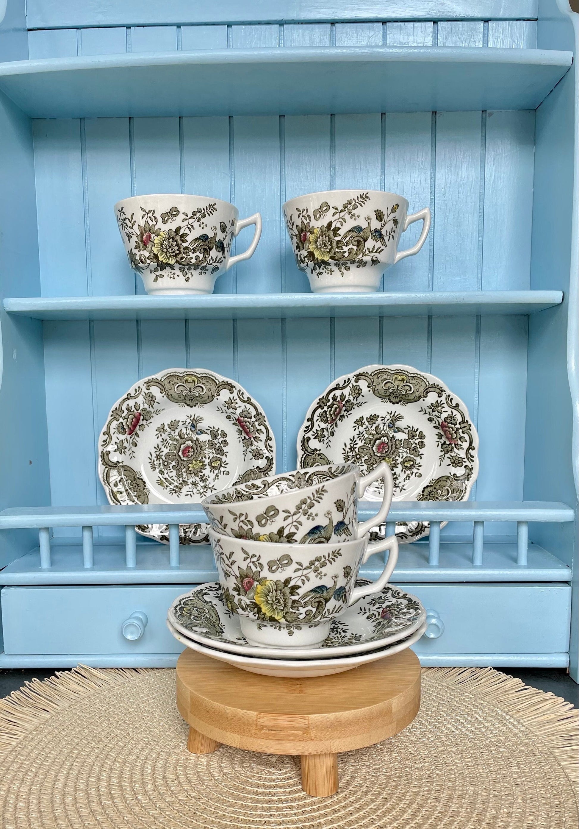 For sale are 6 vintage collectible transferware teacups and saucers in the 'WINDSOR' pattern by Ridgway Potteries Ltd, Staffordshire, England (1955-1972). These teacups and saucers were made in 1966. The 'Windsor' pattern is Ridgway's version of the popular Asiatic Pheasants transferware pattern. ...