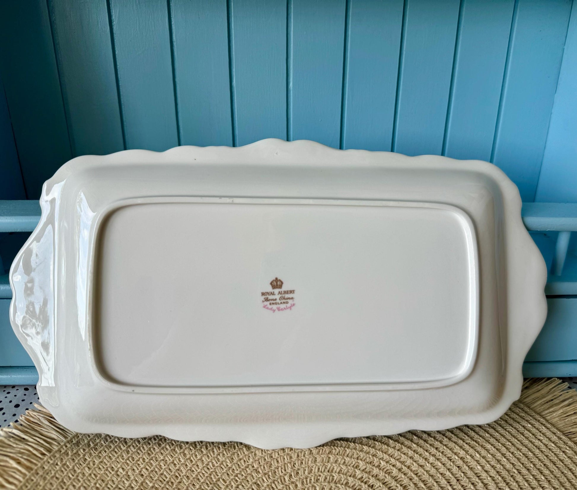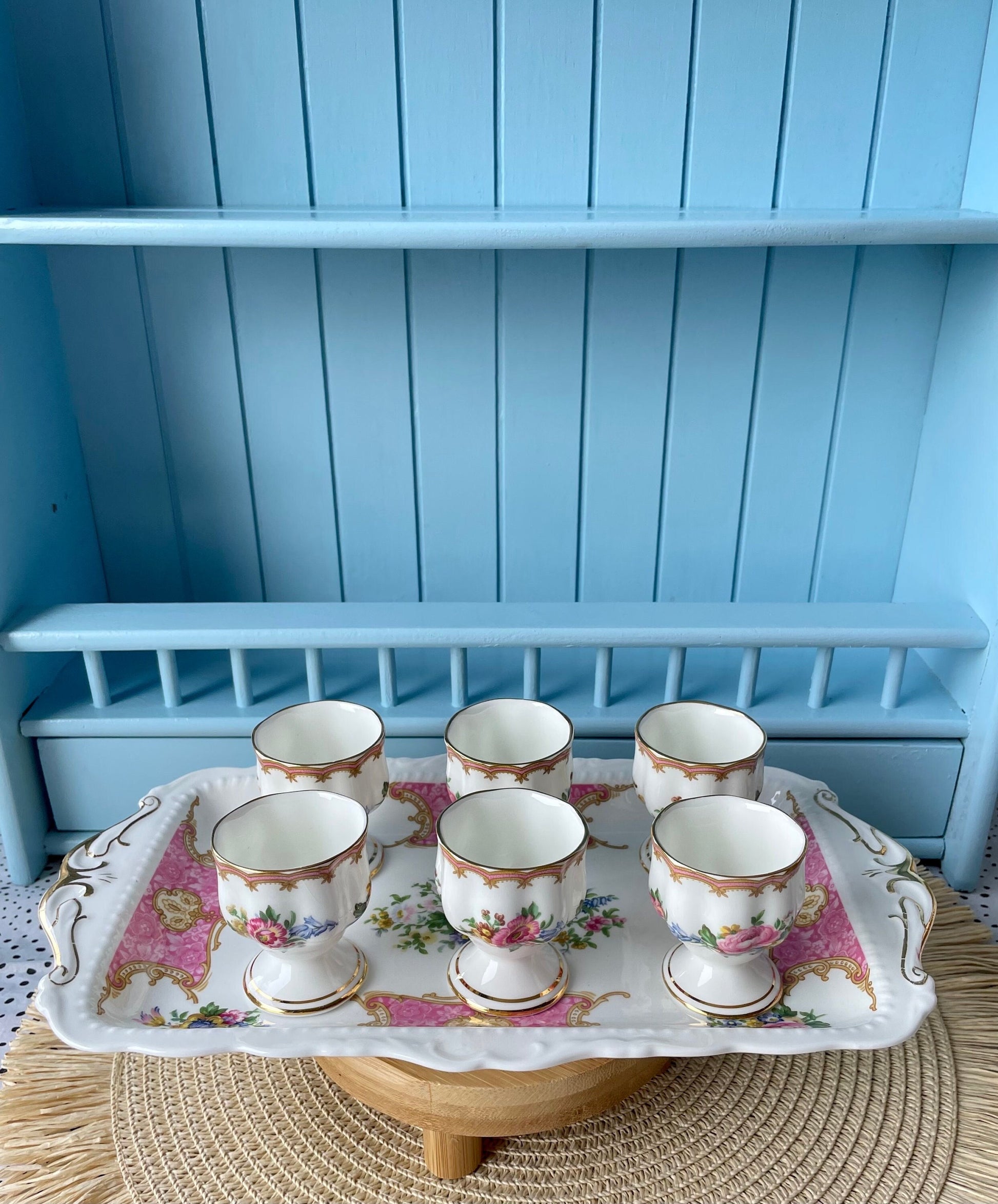 Hard to Find Vintage Royal Albert "Lady Carlyle" Set of 6 Egg Cups with Sandwich Plate, Bone China, Previously Loved, Pink Roses, England