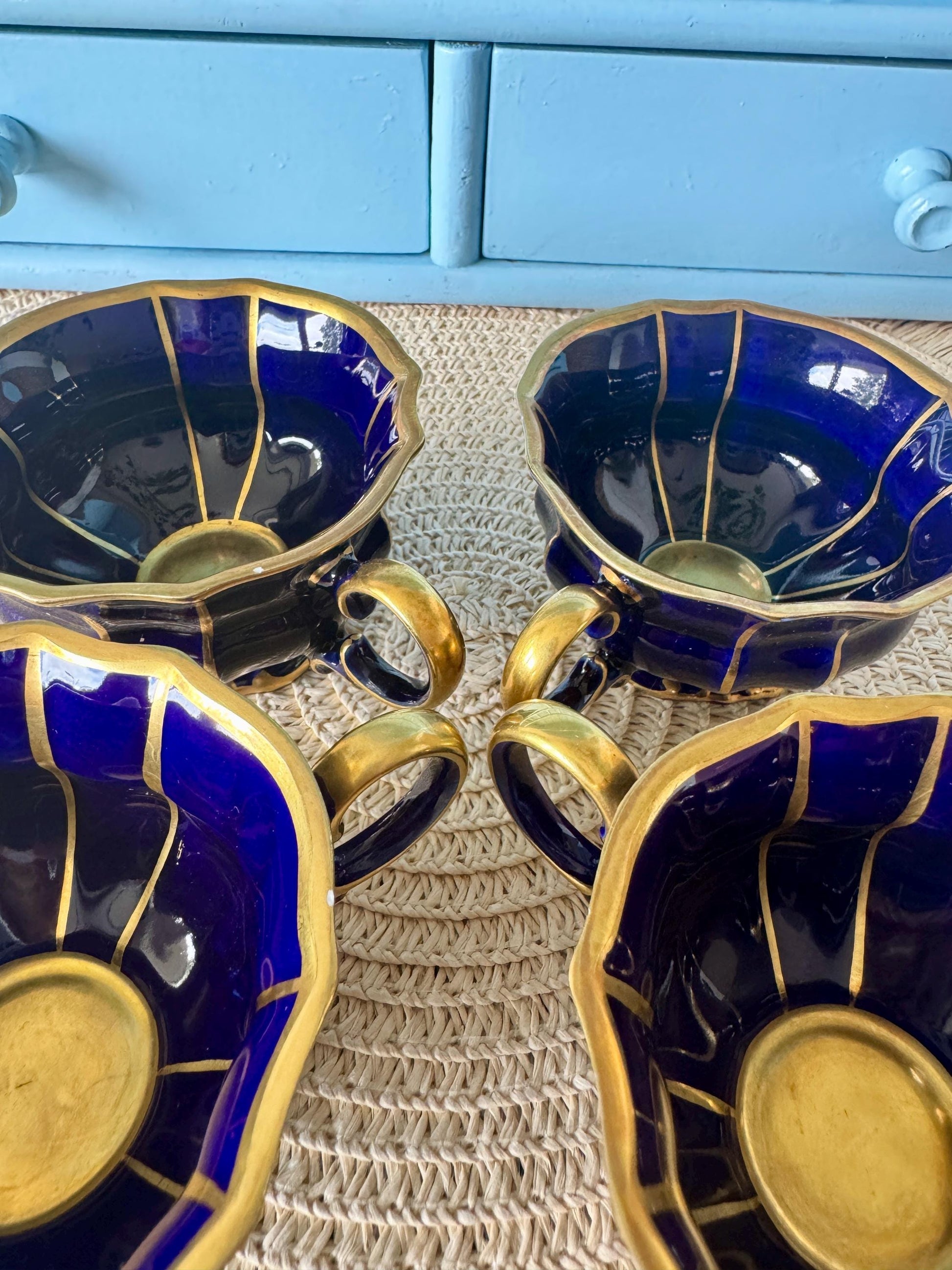 Whether you're an espresso enthusiast, vintage porcelain collector, or just someone who loves a touch of glam, this set is for you. Their rare design, quality craftsmanship, and glowing cobalt-and-gold color palette make them true showpieces.