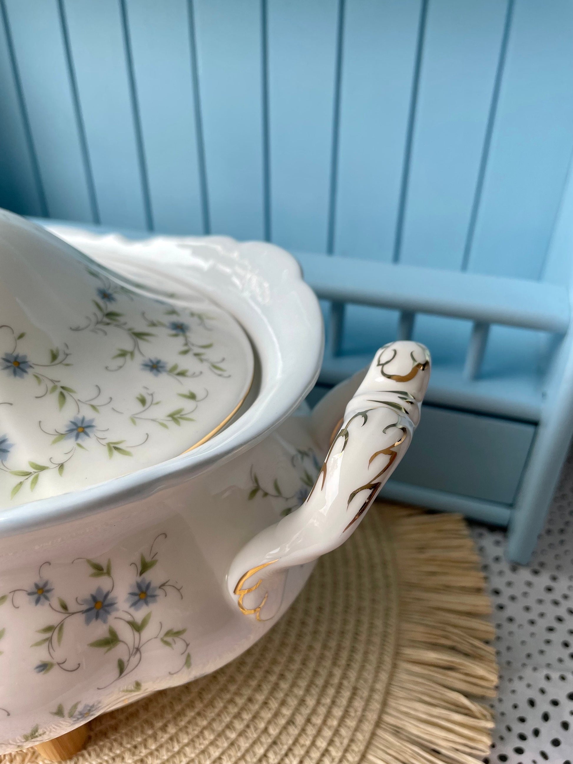 Stunning Royal Albert Caroline Series Large Serving Dish with Forget-Me-Not Flowers and Baby Blue Rims πΌπ½ Elevate your table setting with this exquisite Royal Albert Caroline series serving dish. Measuring approximately 11.4 inches (29 cm) in length and 7.3 inches (18.5 cm) in height (including the...