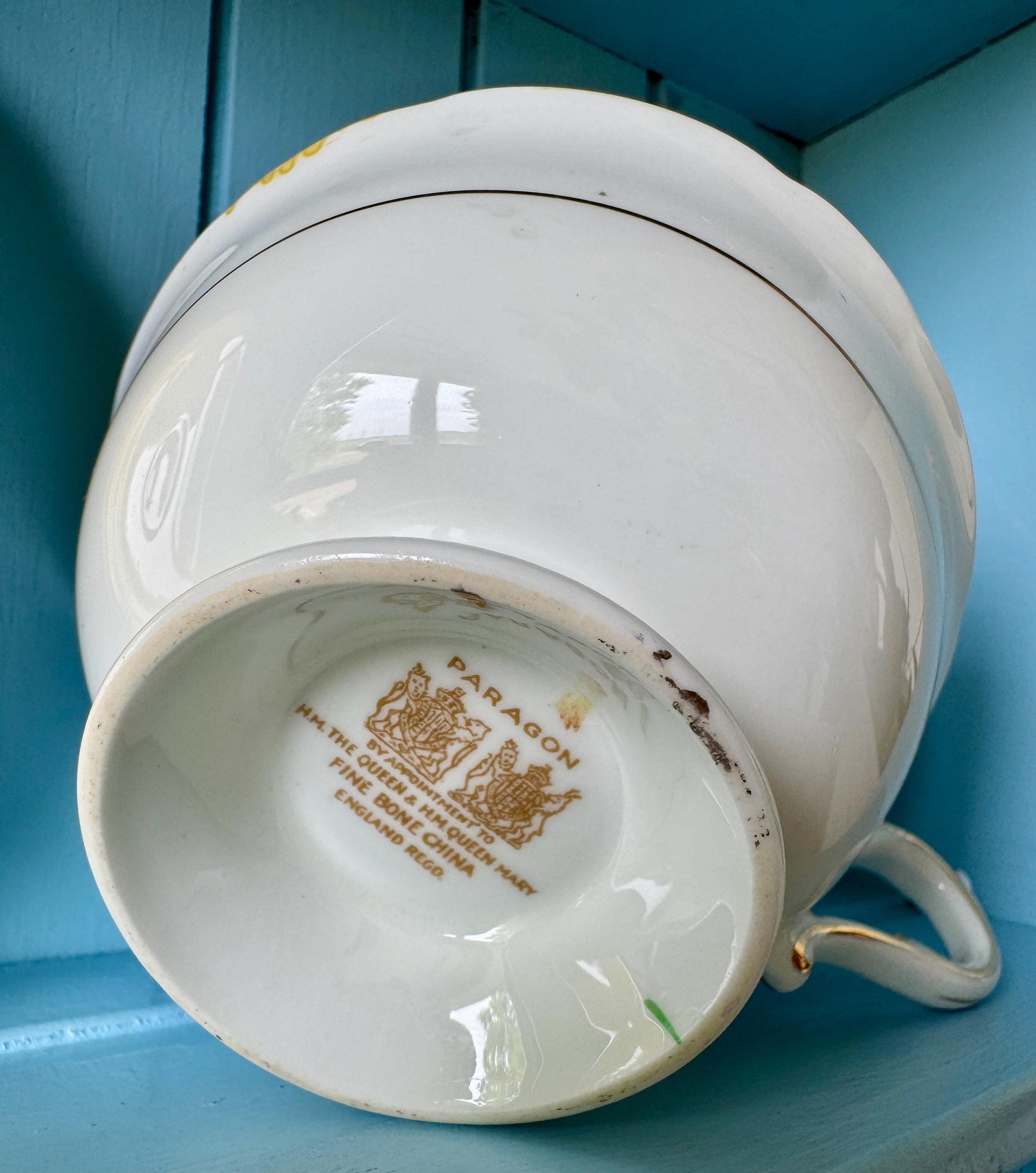 Rare Set of 4 Vintage Paragon Double Warrant Teacups – Egg Yolk Yellow Interior, 1920s–30s Antique China Truly Unique Find, Made in England