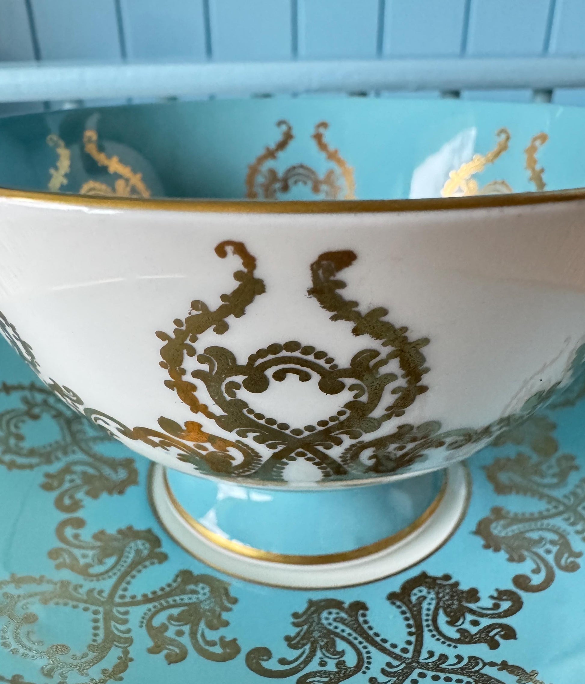 Rare Vintage Aynsley Turquoise Teacup Set c. 1960 - Bone Chi