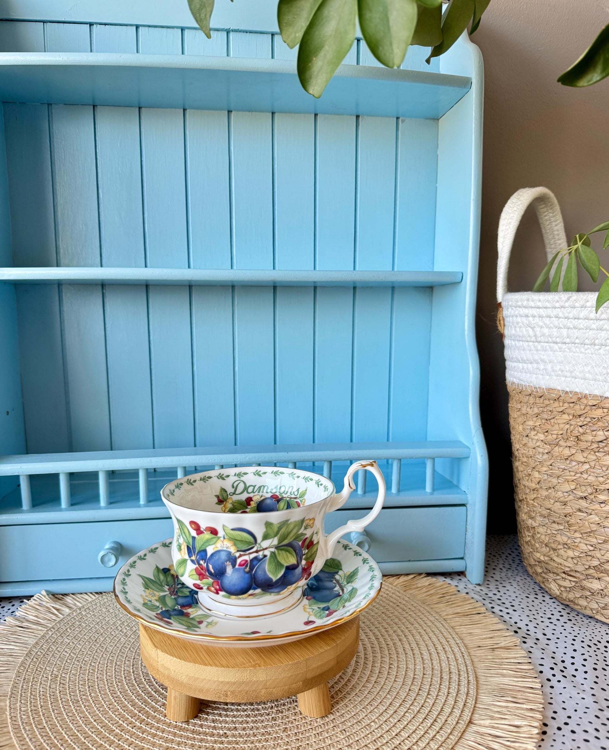 🌟 A Collector’s Dream: Elevate your collection with the stunning Royal Albert Covent Garden Fruit Series breakfast cup and 16cm saucer, featuring the lush and elegant damsons motif.