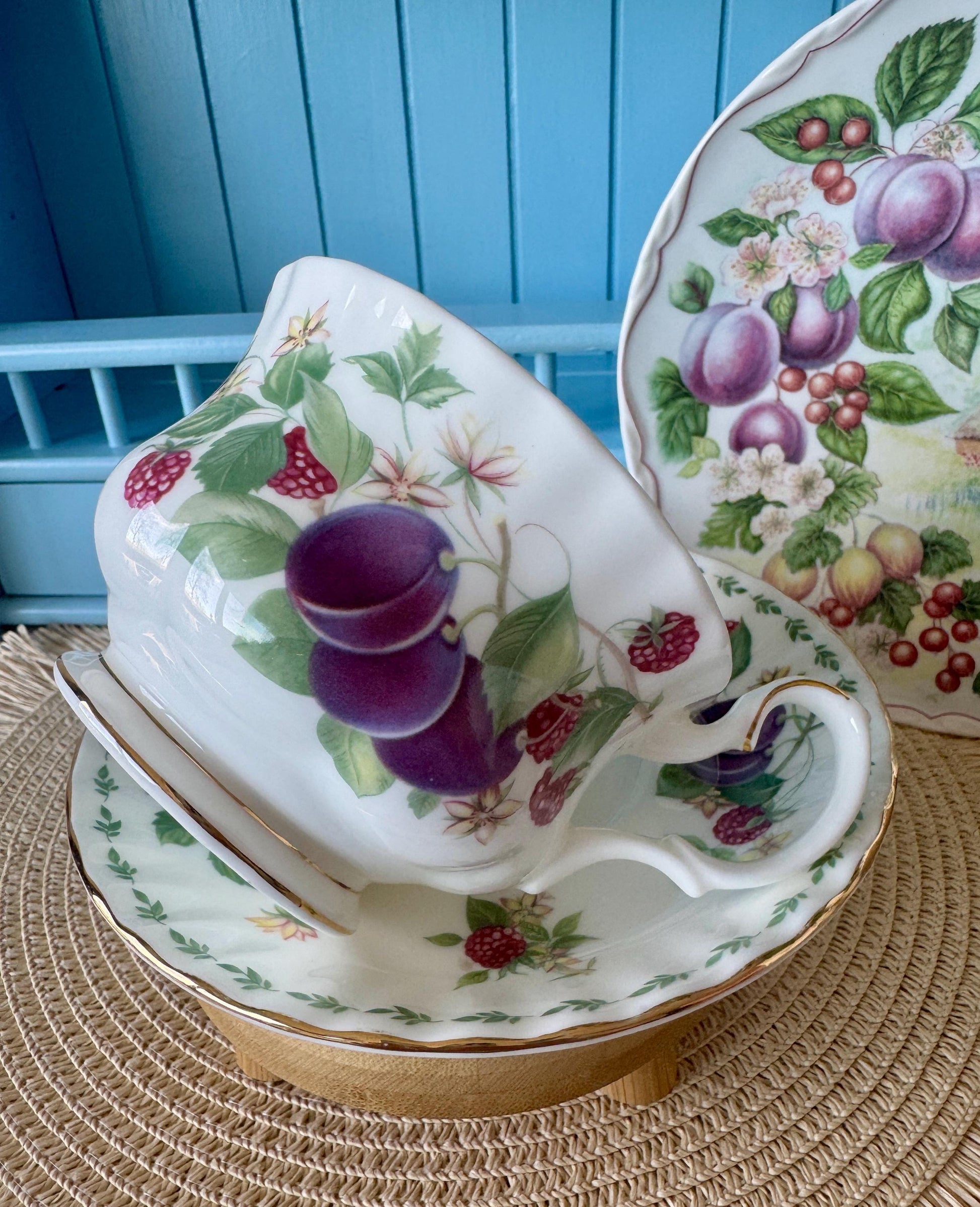 RARE Vintage Royal Albert "Covent Garden" Breakfast Set, Plums, Cereal Breakfast Cup and Saucer, Bone China , Previously Loved, England