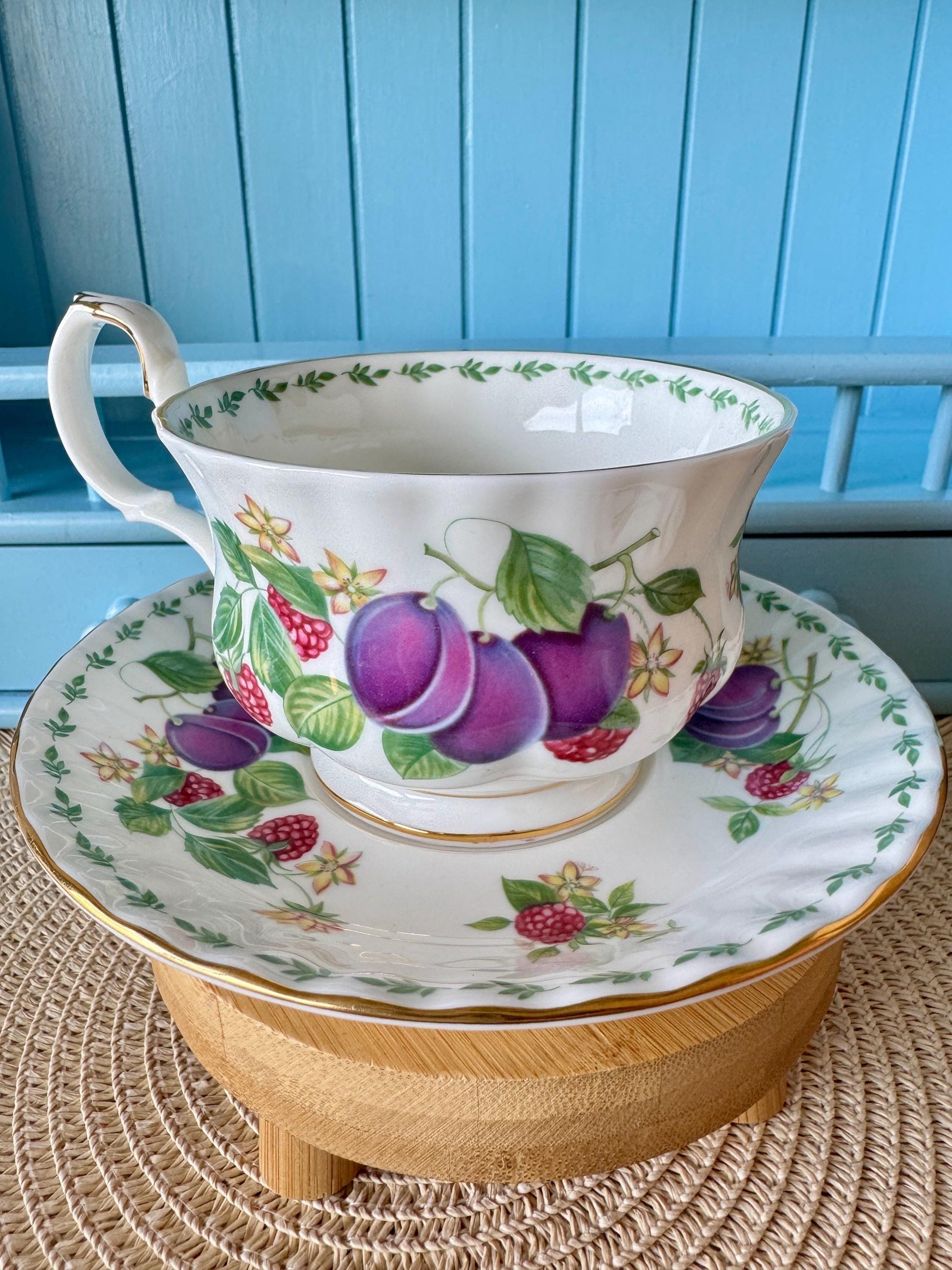 RARE Vintage Royal Albert "Covent Garden" Breakfast Set, Plums, Cereal Breakfast Cup and Saucer, Bone China , Previously Loved, England