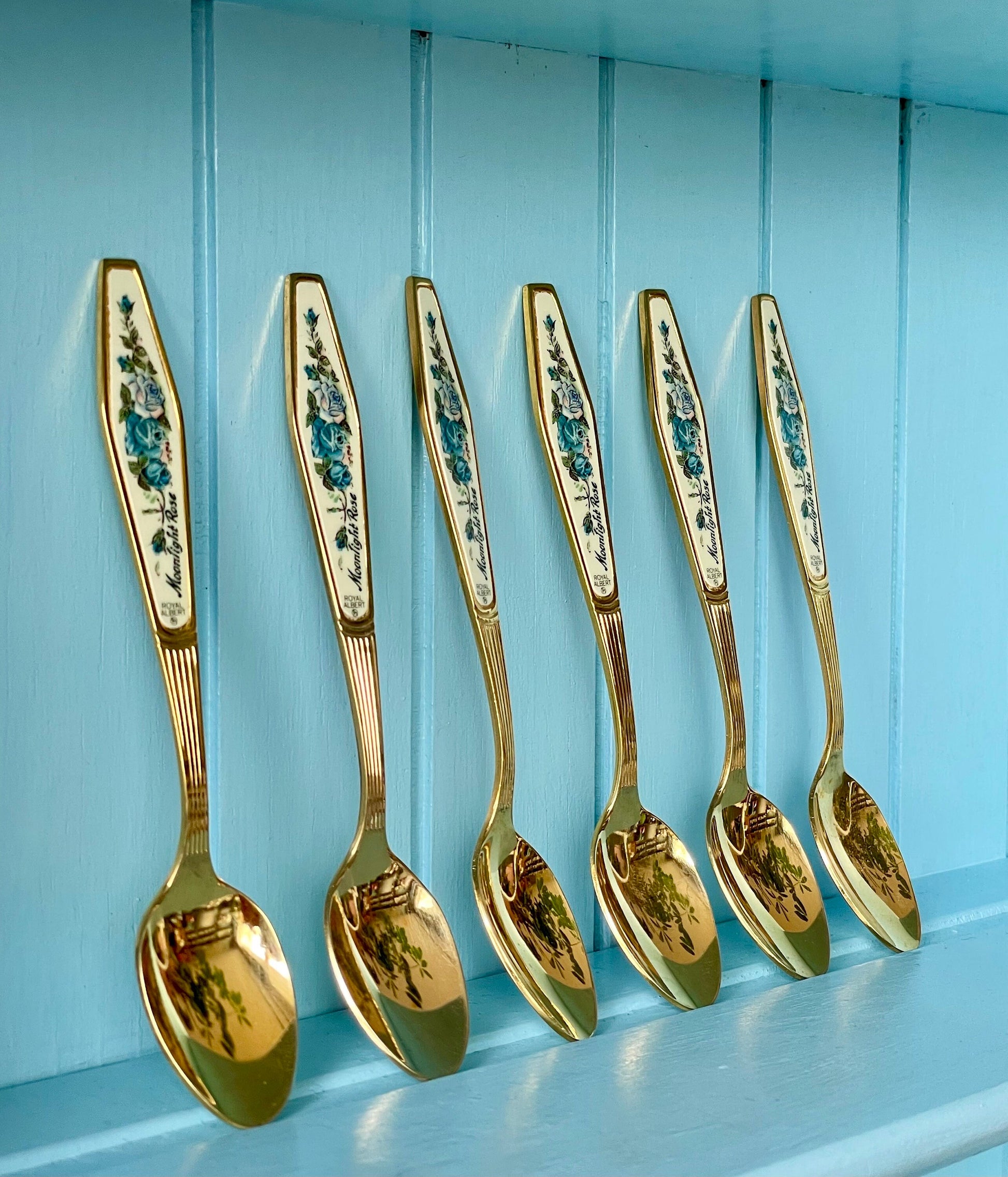 Rare Vintage Royal Albert "Moonlight Rose" TeaSpoon, Set of 6 Gold Hue Spoons, Silver Plated, Previously Loved, For HighTea, Made In England