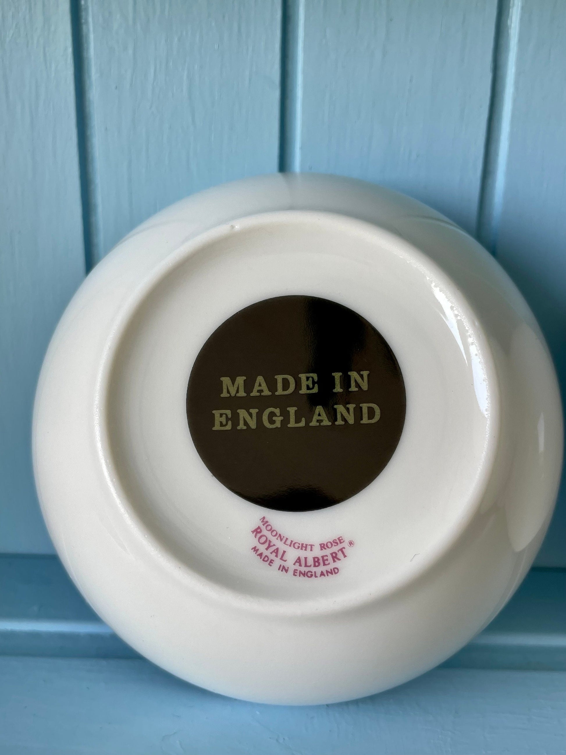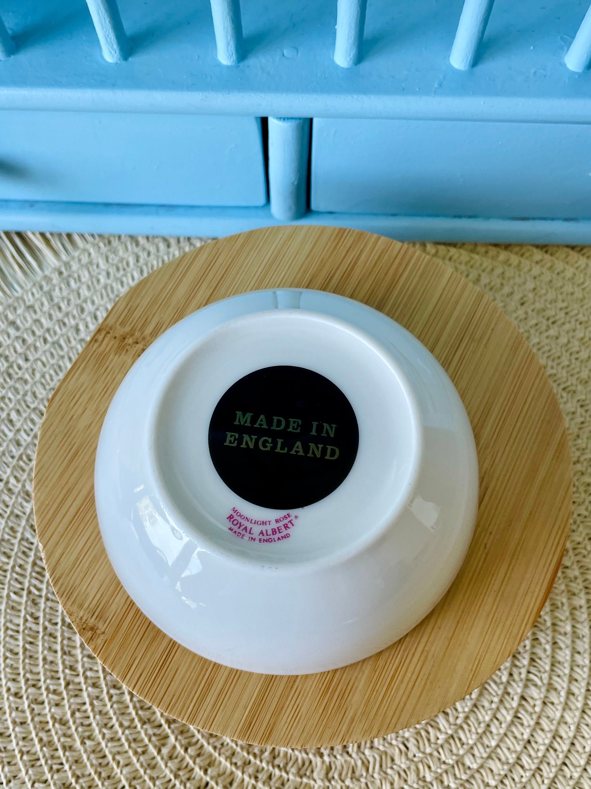 🤩 Unique Marking: Look for the black round circle with "Made in England" mark and the Royal Albert signature on the back of the bowl, showcasing it's genuine origin. 🇬🇧✍️