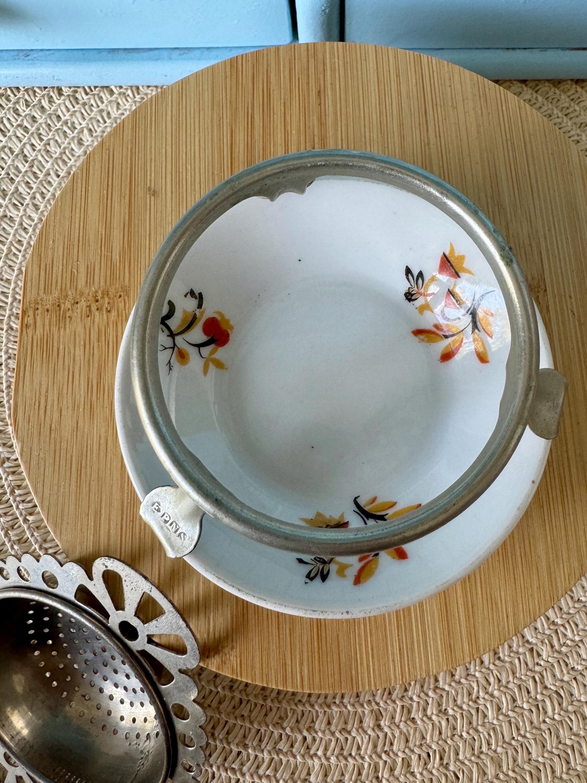 Vintage Bavaria Ornate EPNS Silver Plated Tea Strainer Porce