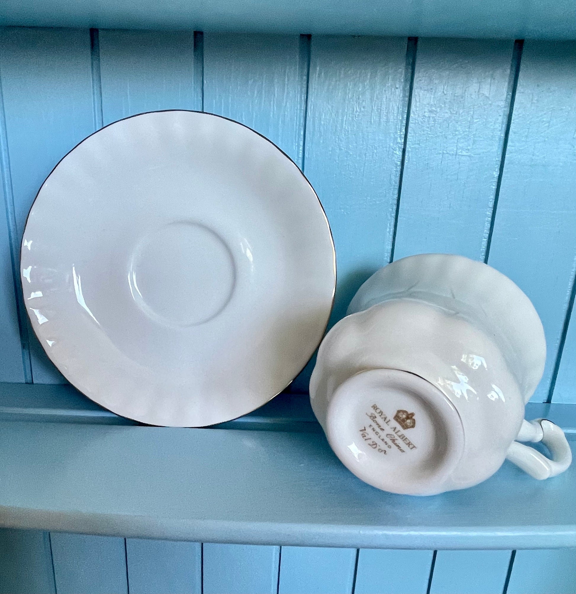 Vintage Crisp White Gold, Royal Albert "Val D'Or" Coffee Cup & Saucer, Bone China, Made In England, Previously Loved Vintage, High-Tea Party