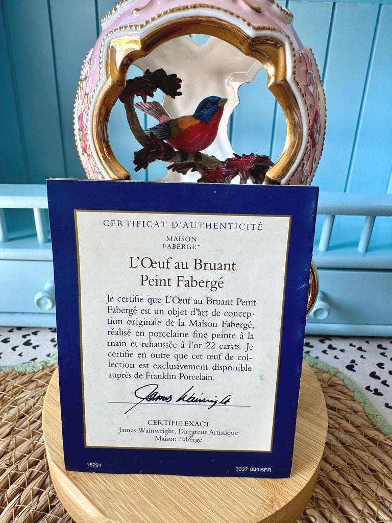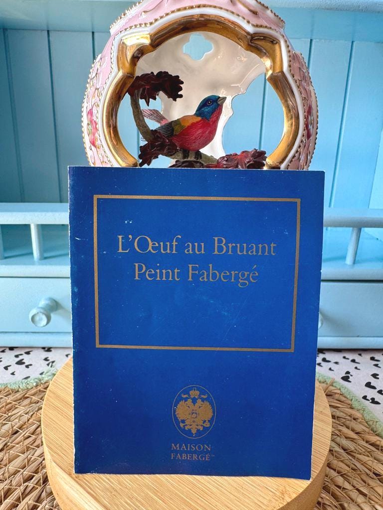 💖 Fall in Love with Timeless Elegance 💖 Step into a world of royal grace and artistry with this magnificent Fabergé-style collector egg, L’Œuf au Bruant Peint — “The Bunting Bird Egg.” 🕊️✨ Hand-painted on fine porcelain and adorned with shimmering 22-karat gold, this exquisite creation pays tribut...
