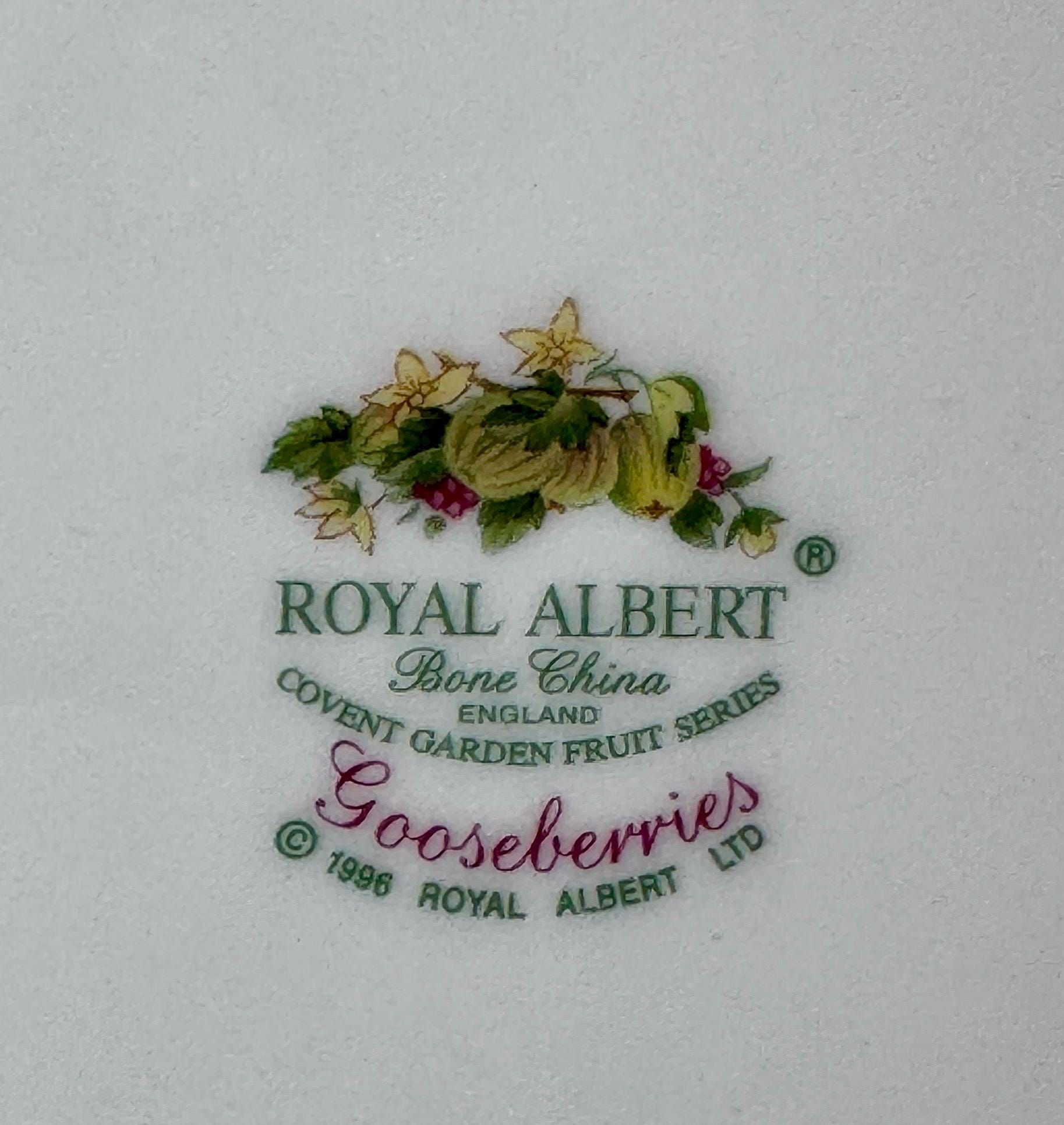 Vintage Royal Albert "Covent Garden" Lunch Plates in Grapefruit, Gooseberries, Damsons, Apples, Breakfast Plate 20,5cm, Bone China, England