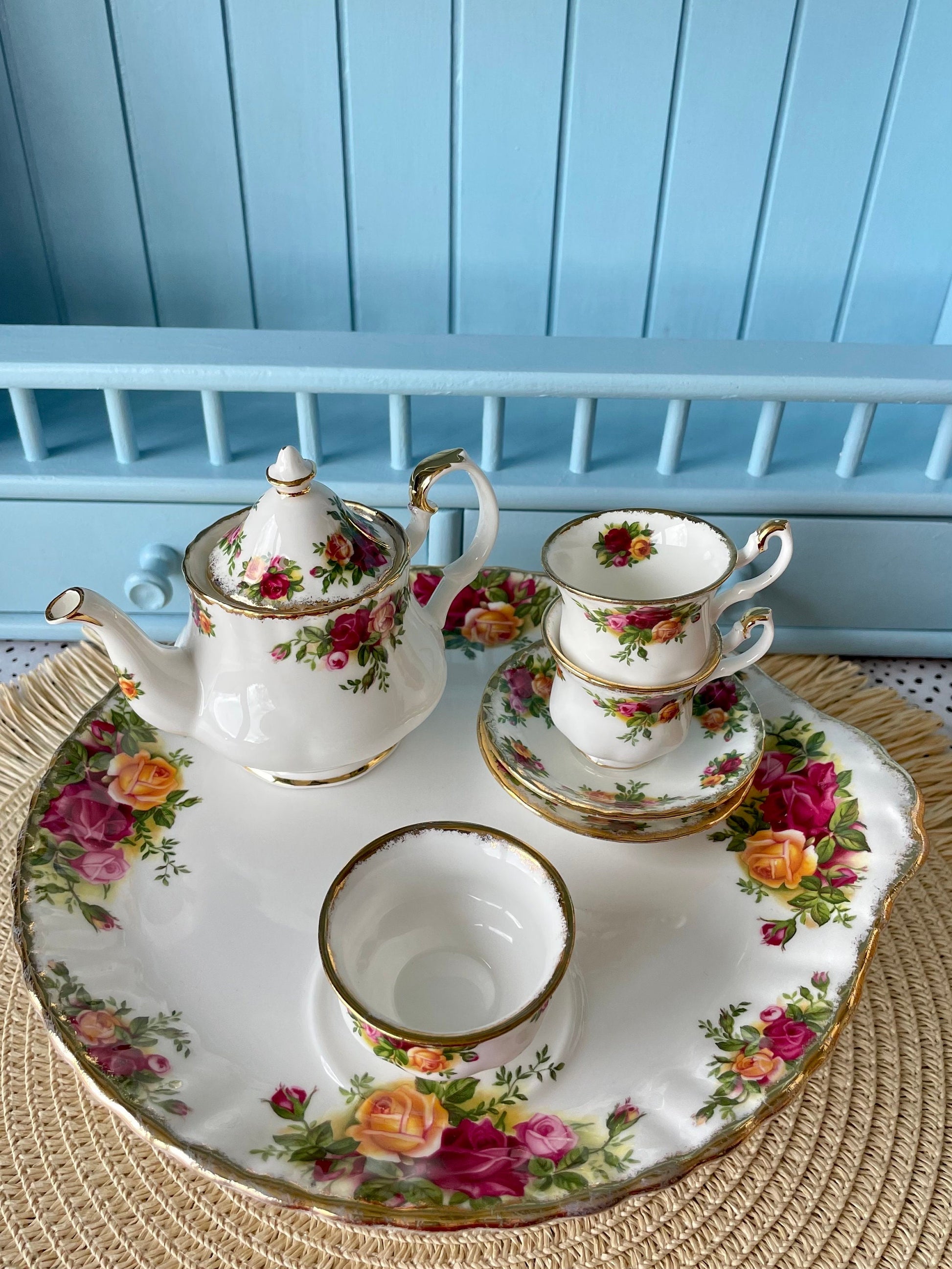 Vintage Royal Albert "Old Country Roses" Miniature Tea Set, First Quality, Fine Bone China, Previously Loved Vintage, Made in England