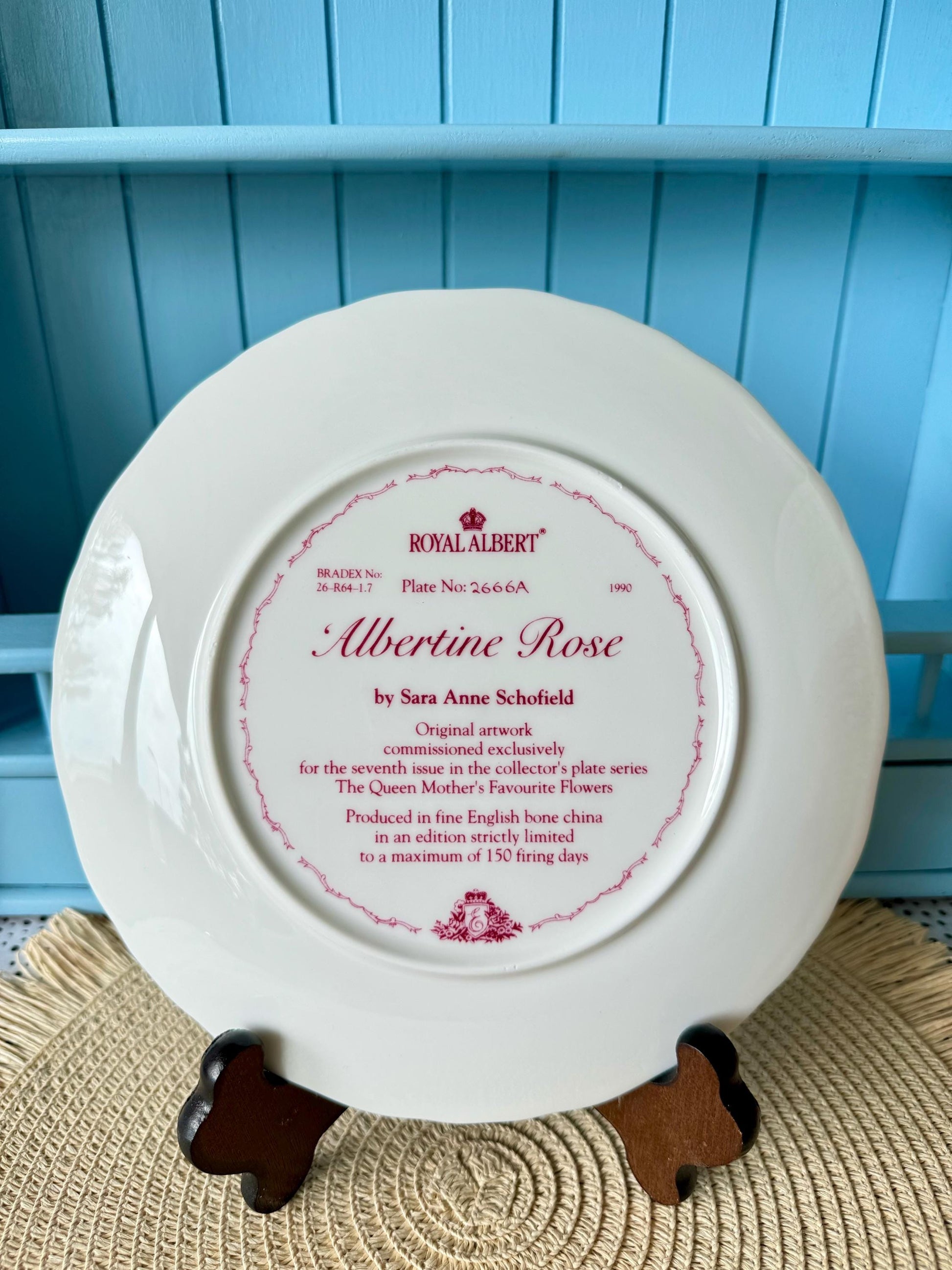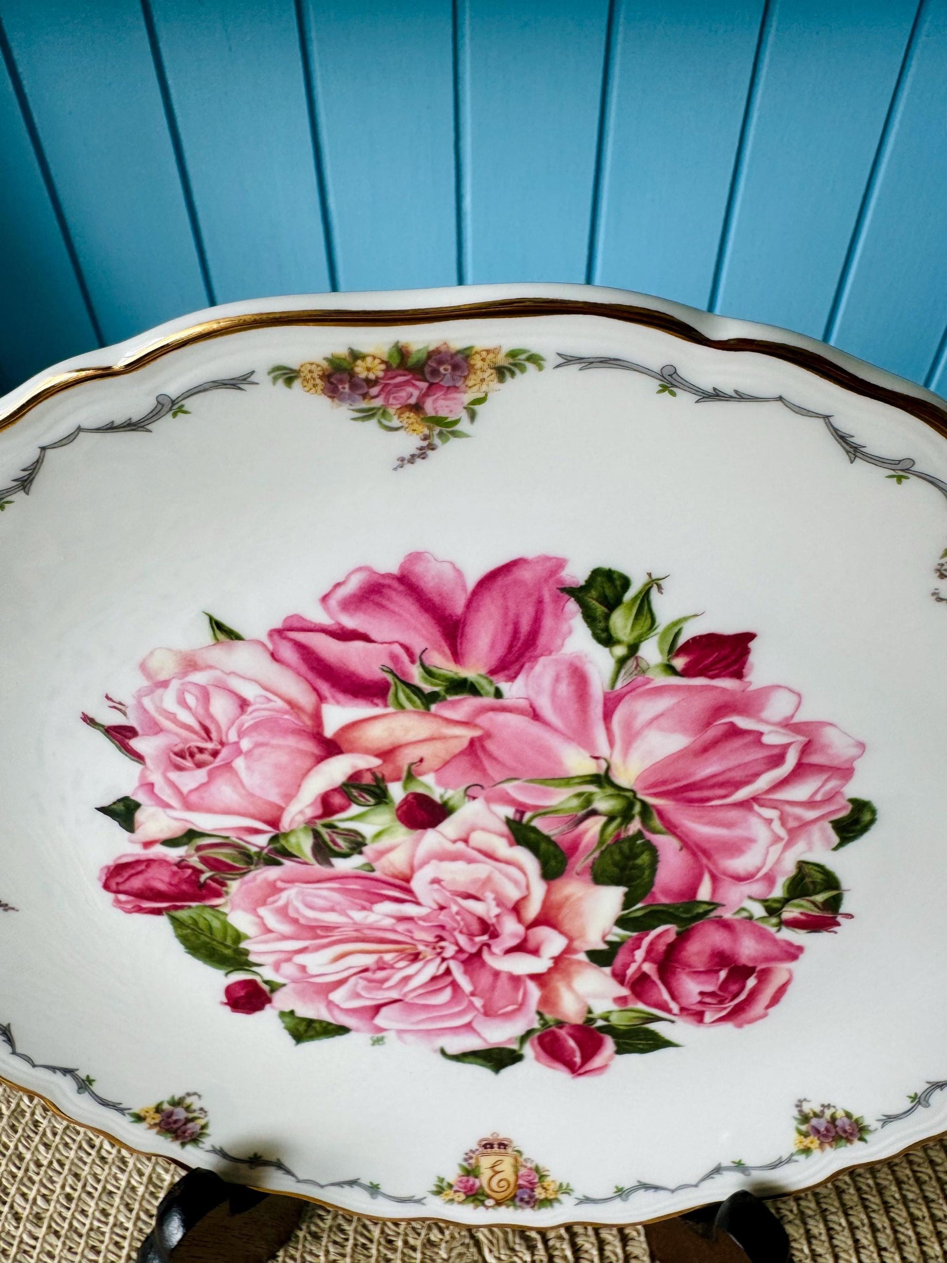 Vintage Royal Albert Vintage 1990's Bone China Albertine Rose Design 22CM Plate, Queen Mother's Favourite Flowers, Sarah Schofield, England