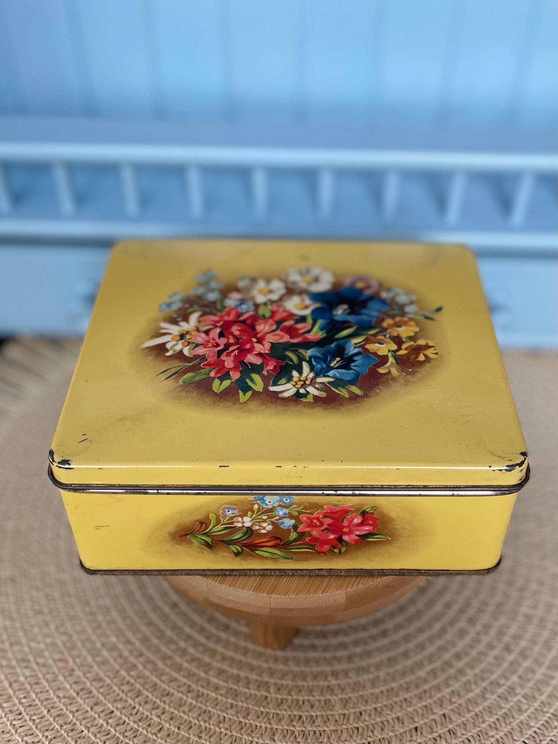Introducing a delightful Vintage Tin Cookie Storage Box from Verkade, a charming treasure with a yellow floral decor, perfect for storing sweet memories! 🌼 ~~ Specifications ~~ Box Dimensions: 15 cm x 12 cm x 6 cm (5.91 inches x 4.72 inches x 2.36 inches) This lovely tin box features a beautiful y...